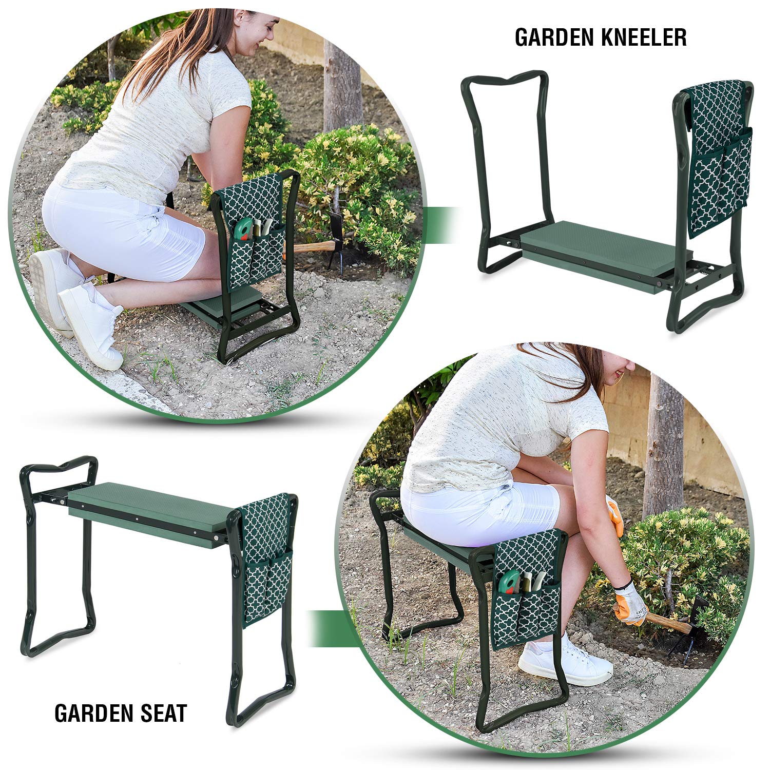 • Comfortable Kneeling Support: Designed with soft EVA foam padding, this garden stool with kneeler cushions and protects your knees while gardening, reducing strain and enhancing comfort for long tasks