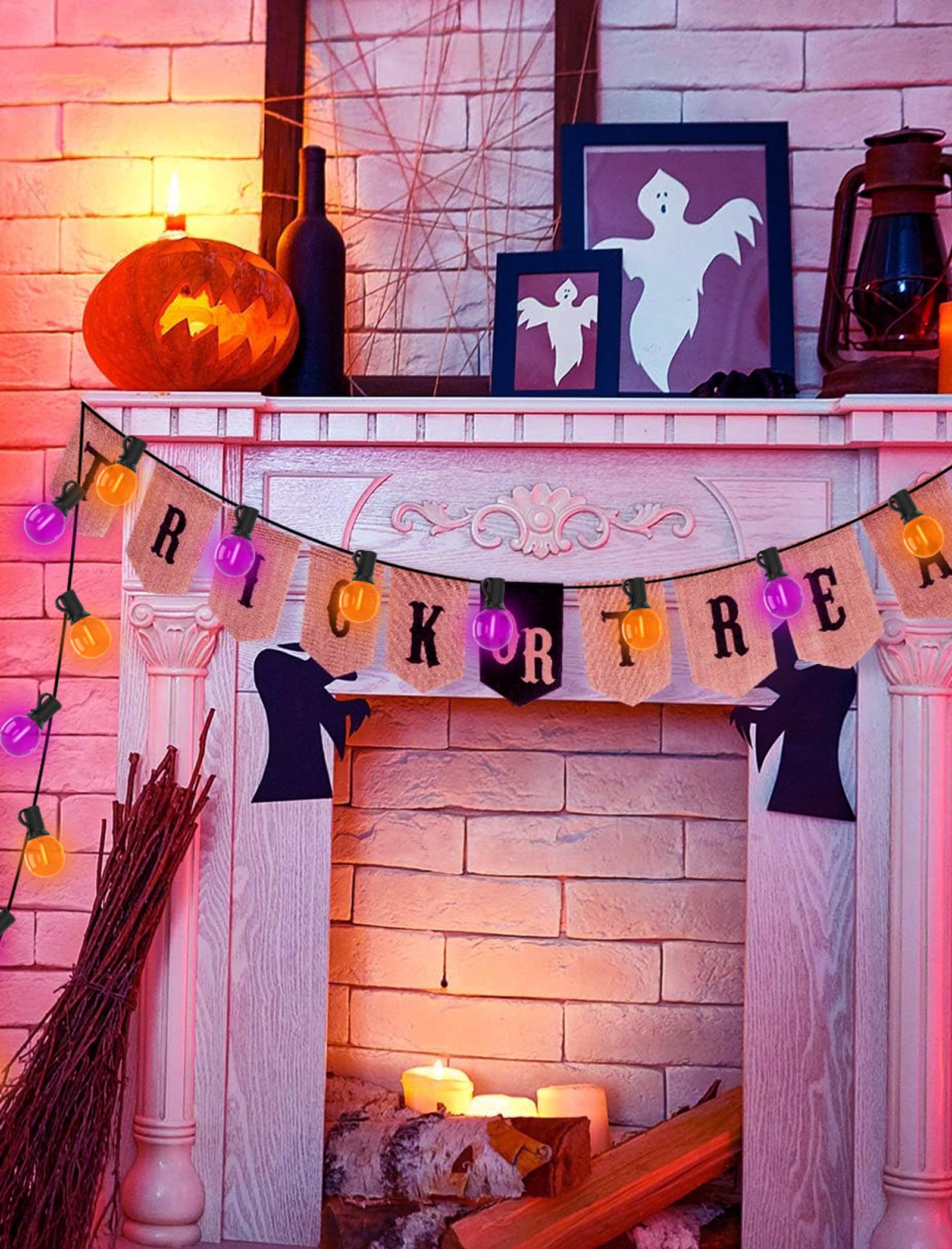 Abeja G40 Purple Orange LED Replacement Bulbs, 0.6W Halloween Bulb Shatterproof Waterproof Outdoor String Lights Bulb for Indoor Outdoor Halloween Patio String Lights, 25 Pack