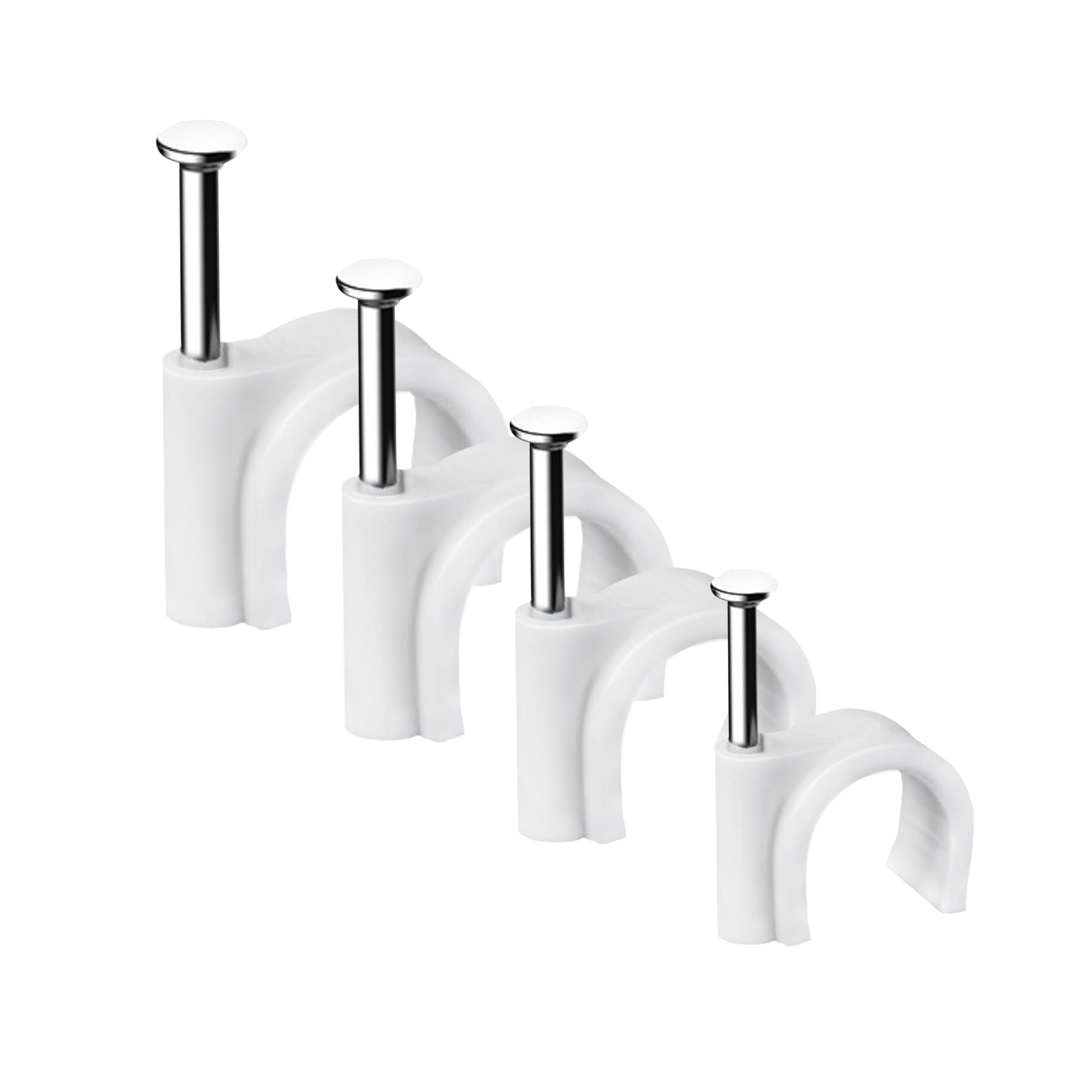 • [ Durable ] Cable clips are made of premium stabilized plastic, white style is more versatile, and integrates with the home environment to make it cleaner. Round cable clips allow you to secure runs of round cables like coax to walls and floorboards for a cleaner look and prevent tripping over loose cables