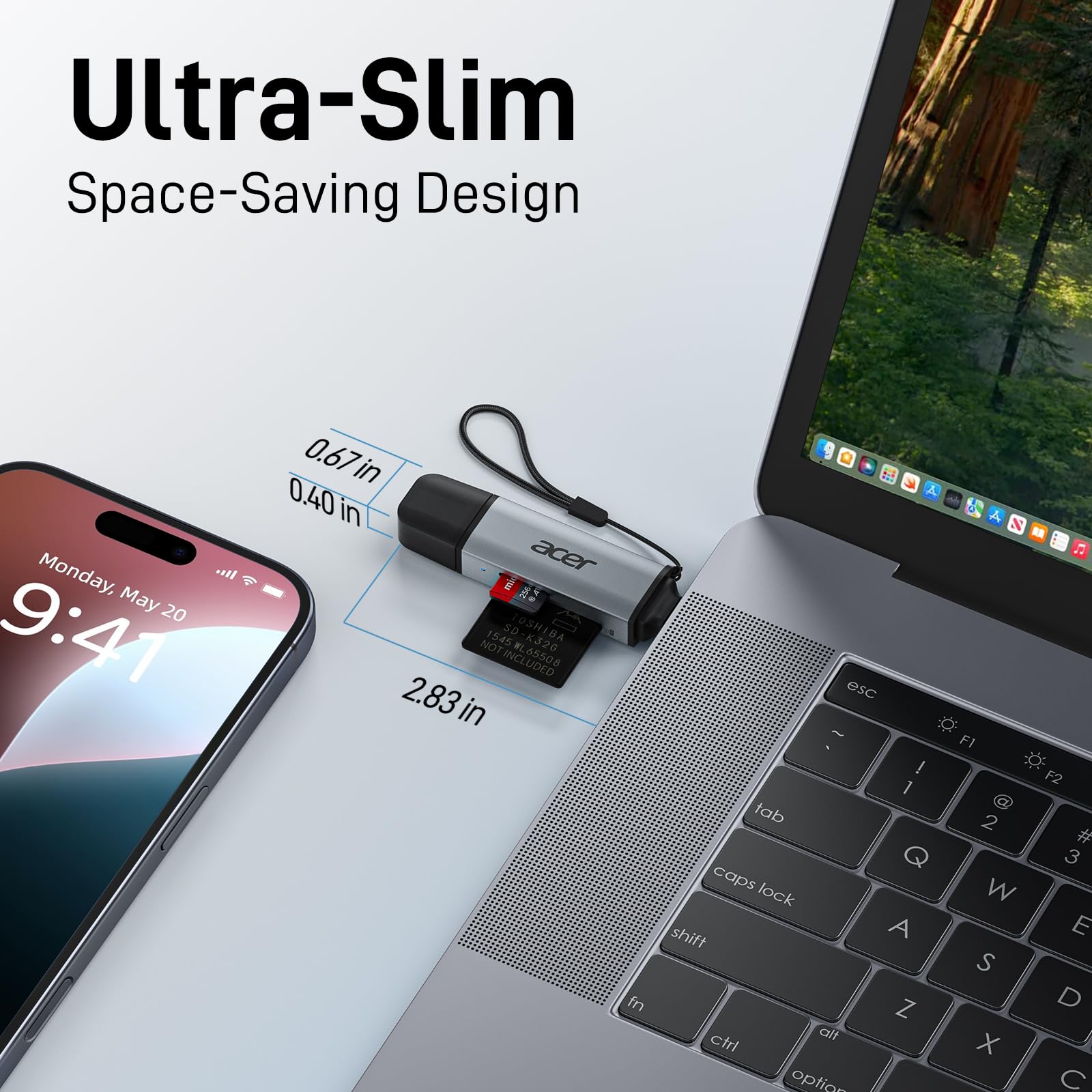 acer SD Card Reader USB C, Dual Slots USB 3.0 Type C to Micro SD Card Adapter, Memory Card Reader for MicroSD, SDHC, SDXC, Compatible with Laptop, PC, iPhone16/15, MacBook Pro/Air, iPad Pro, Android