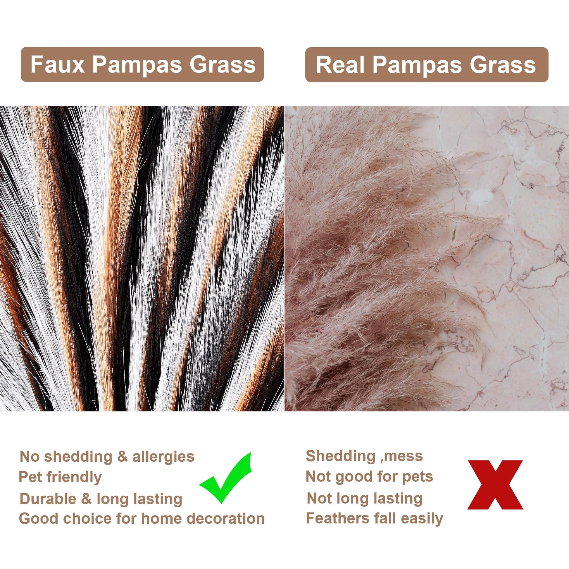 • Soft, Fluffy Faux Pampas Grass: The fluffy pampas grass is made from soft silk, metallic wire, and paper, using delicate hand craftsmanship. The artificial pampas doesn’t shed, does not deform, does not smell and has no allergens.
