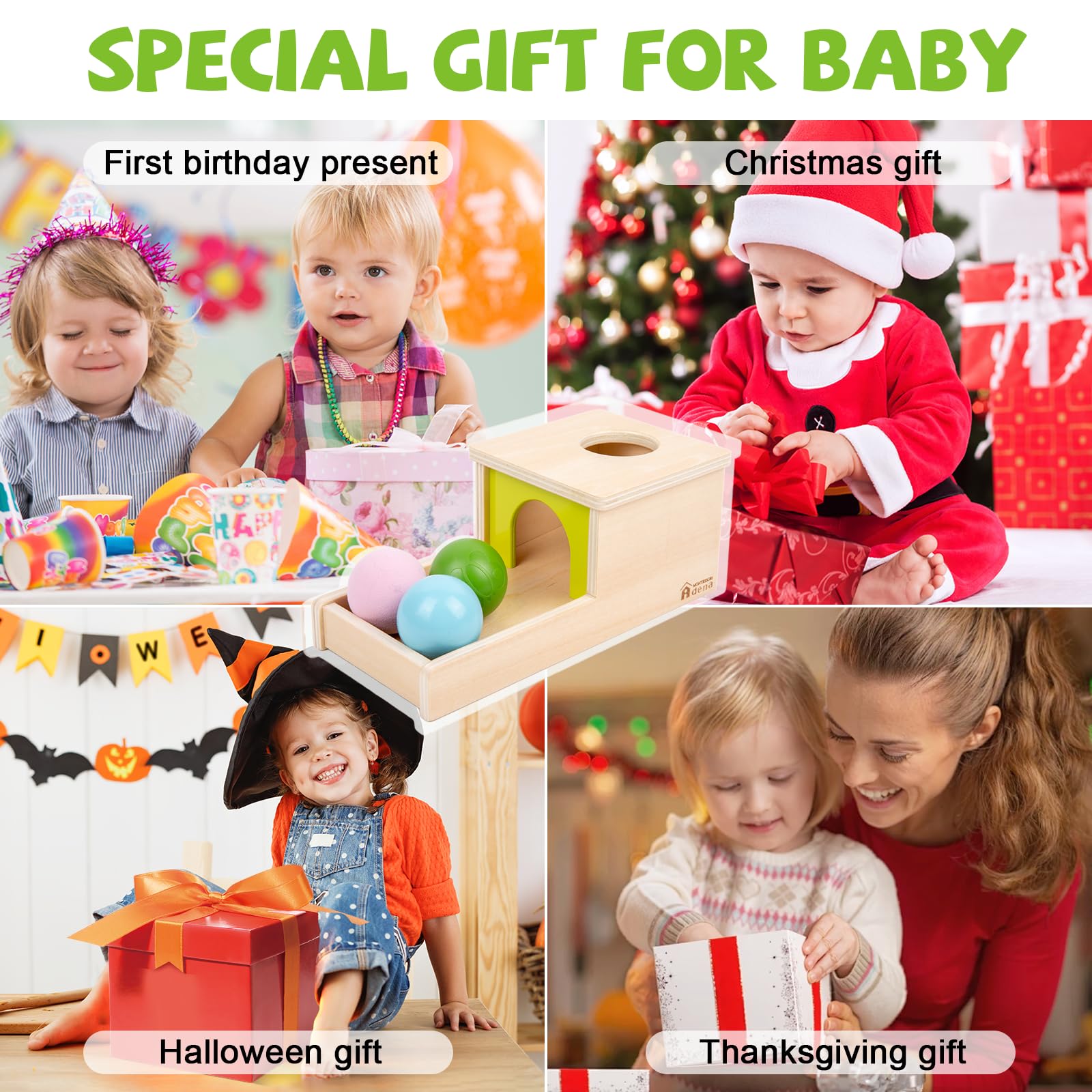 Adena Montessori Object Permanence Box with Tray Three Balls Montessori Toys for 6-12 Months Baby 1 Year Old Infant Toddler (Small Box - Typical)