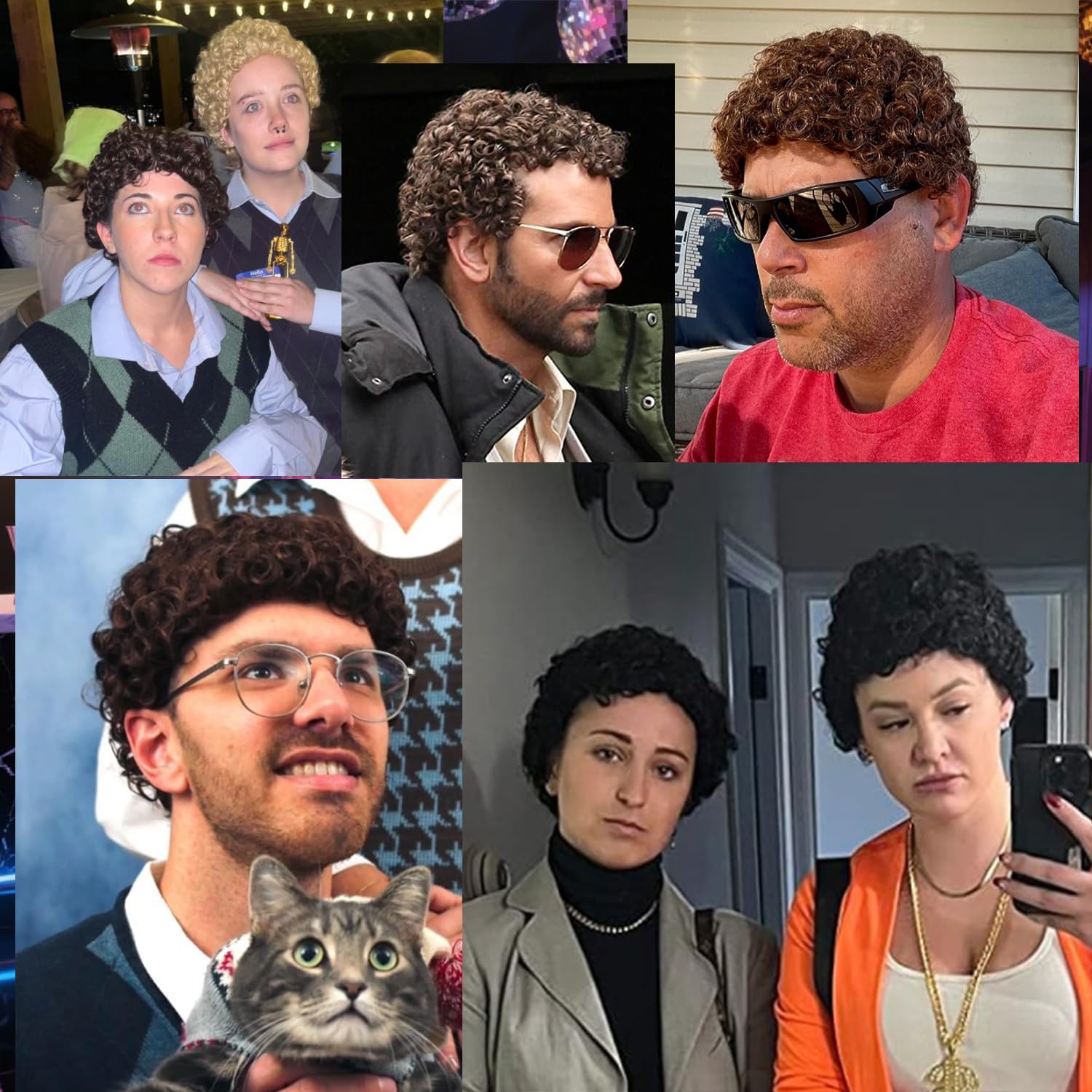 Adequate Mens Short Afro Curly Wigs for Male 70s 80s Disco Wig Guy Rocker Wig Halloween Cosplay Fancy Wigs for Daily Party Costume (Black)