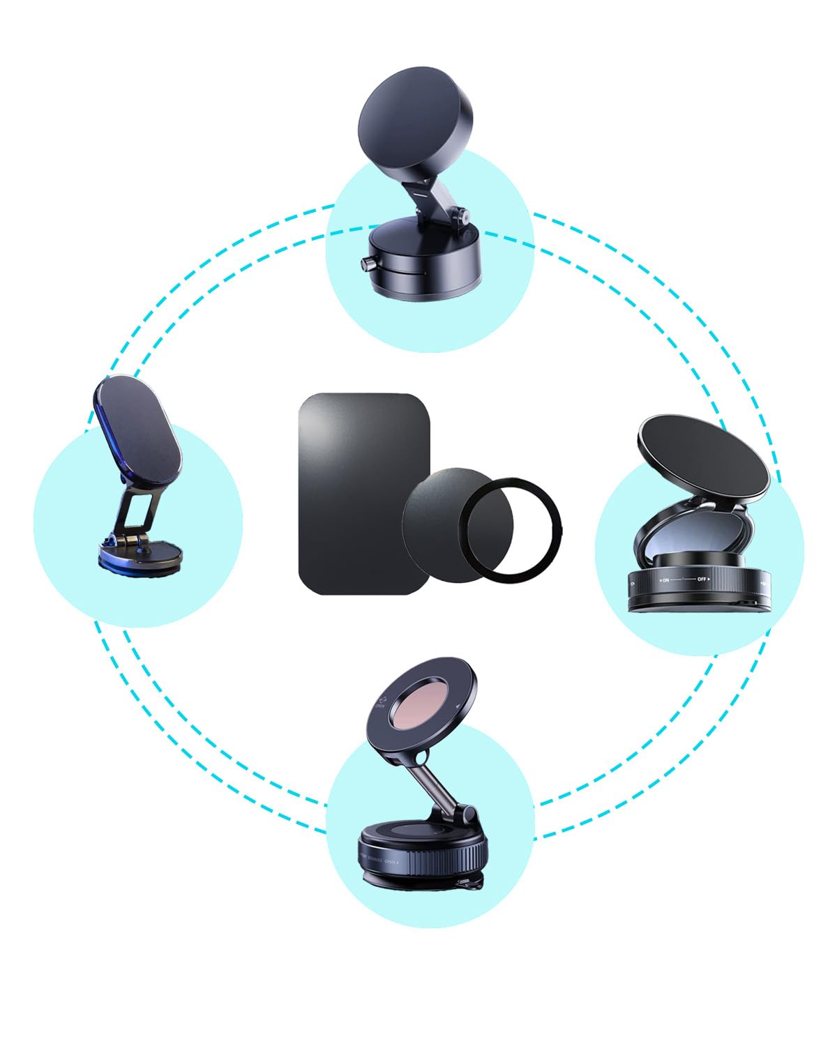 • Versatile Compatibility: Compatible with all magnetic mounts and phone cases, these metal plates are ideal for iPhones, Android devices, and other smartphones. They work seamlessly with magnetic car mounts, cradles, and holders.