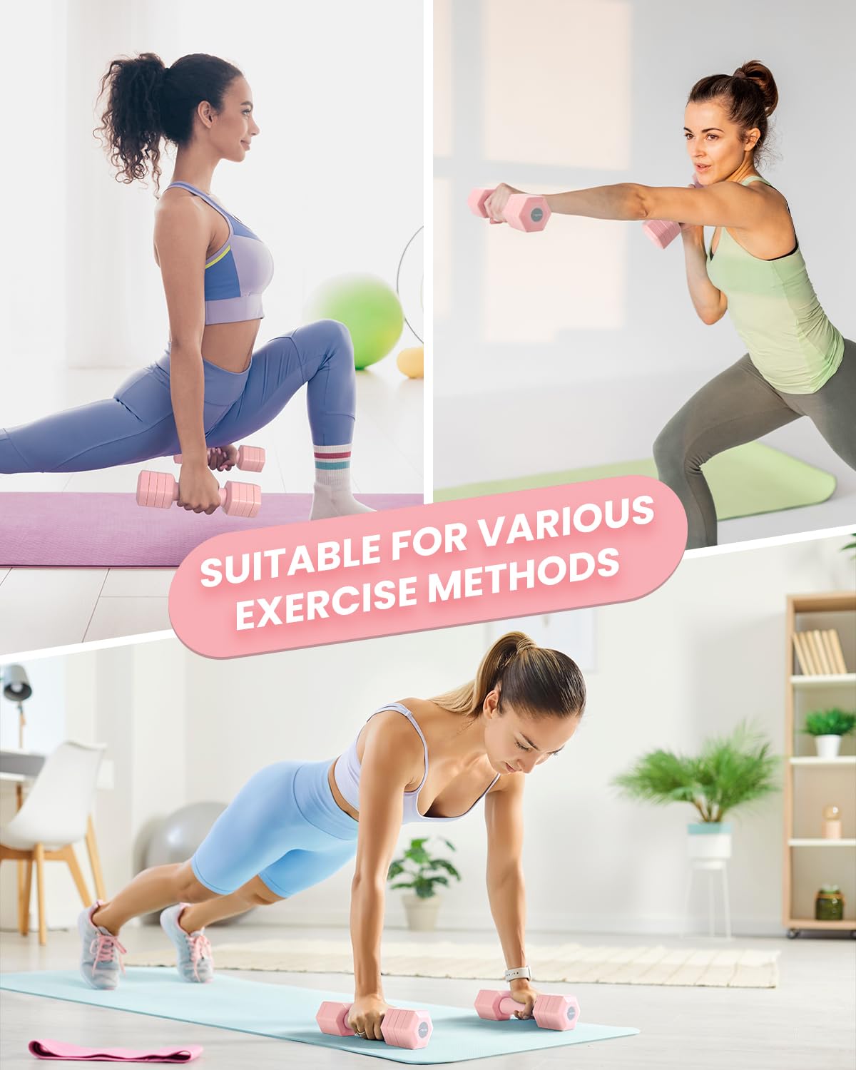 Adjustable Dumbbells Set, 4 in 1 Hand Weights Set for Women Men 10 LB Dumbbell Pair Each 2lbs 3lbs 4lbs 5lbs Weights Dumbbells Set with TPU Soft Rubber Handle for Home Gym Exercise Fitness - Pink