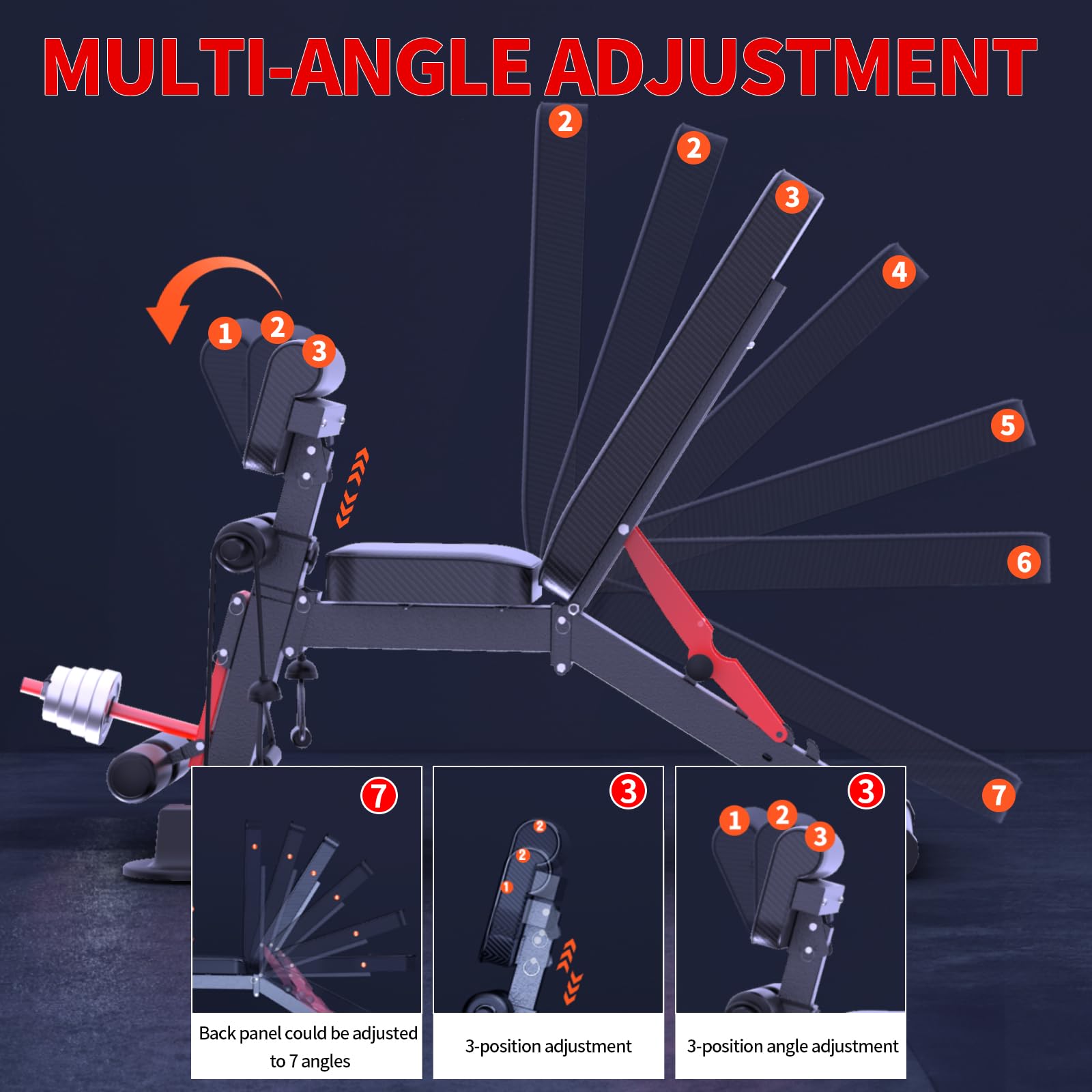 • [Adjustable dumbbell bench]: The dumbbell bench is designed with 7 backrest cushion positions and 3 stopper adjustments, easy to adjust, one second to complete the adjustment. You can switch to the right position at will during the exercise, effectively improve the effect and time of the whole body exercise and increase the muscle shaping effect