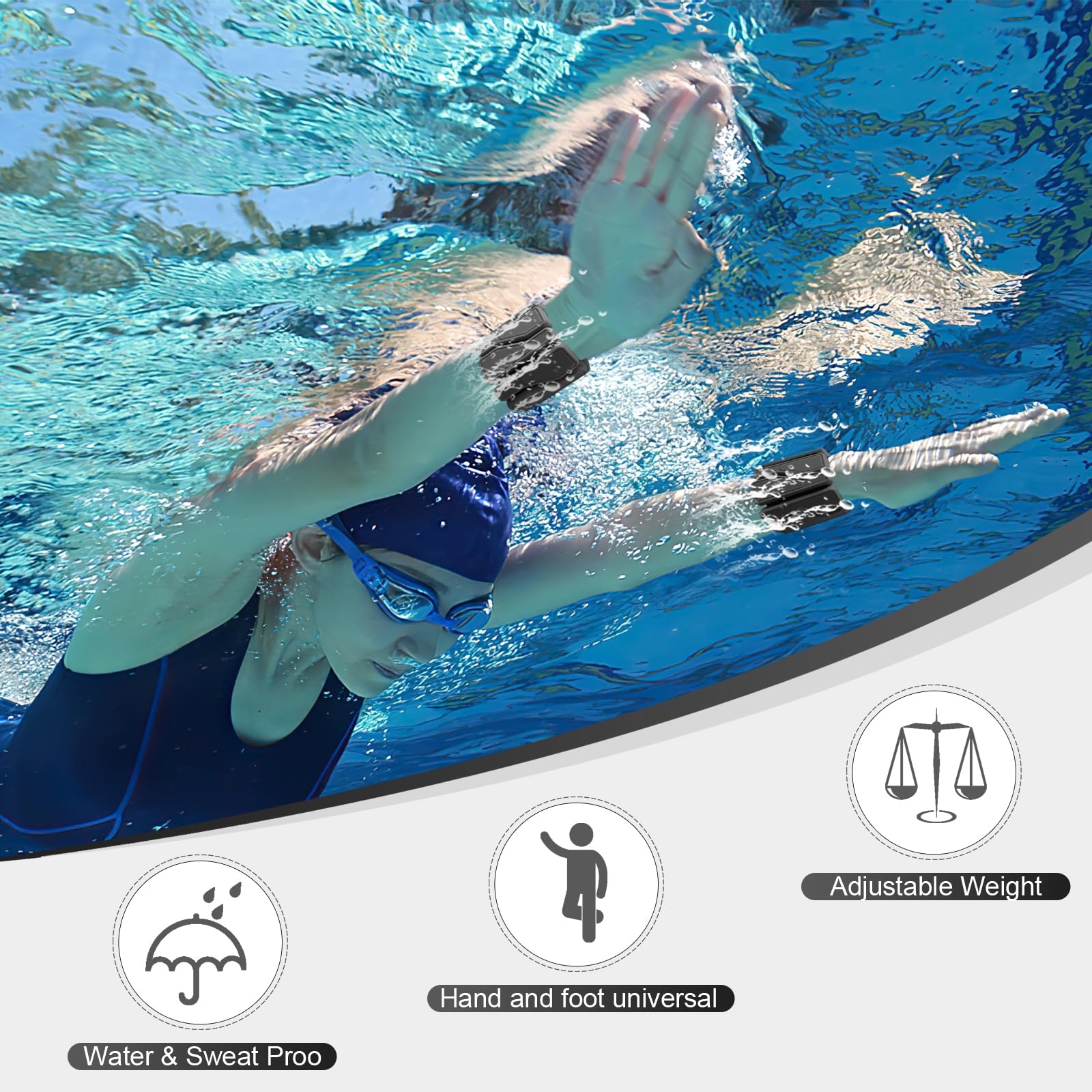 • [FULL-BODY WORKOUT ESSENTIAL]Each set includes two black adjustable weights (1 lb each, totaling 2 lbs for the pair). Customize intensity of your weighted bracelet by adding or removing modules. Wear the weighted wristbands as arm, ankle, feet, leg, hand, or wrist weights for dryland or aquatic workouts, daily fitness, strength training, or physical therapy.