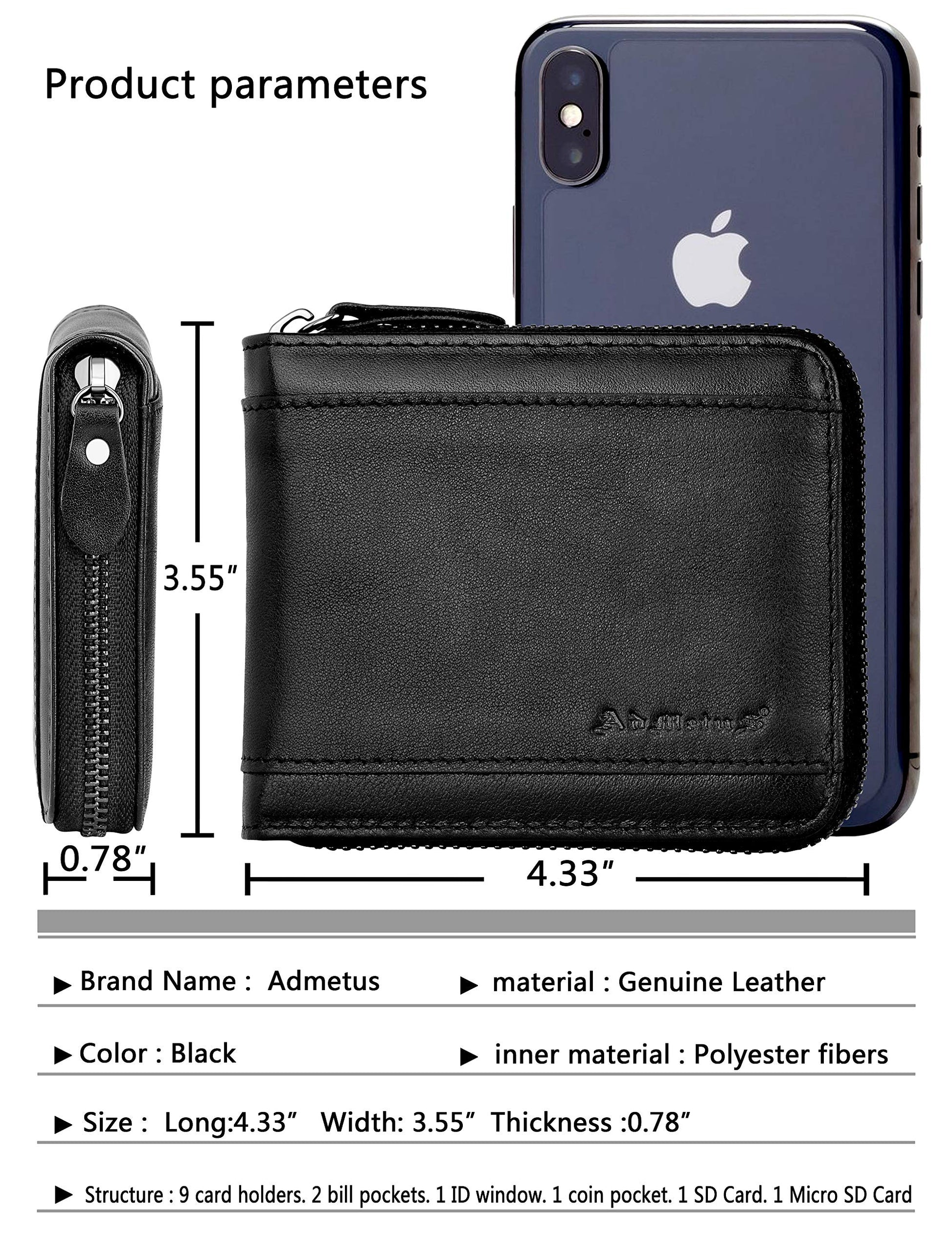 Admetus Wallet for Men Zipper Leather Wallet for Men Bifold RFID Blocking Card Holder black10