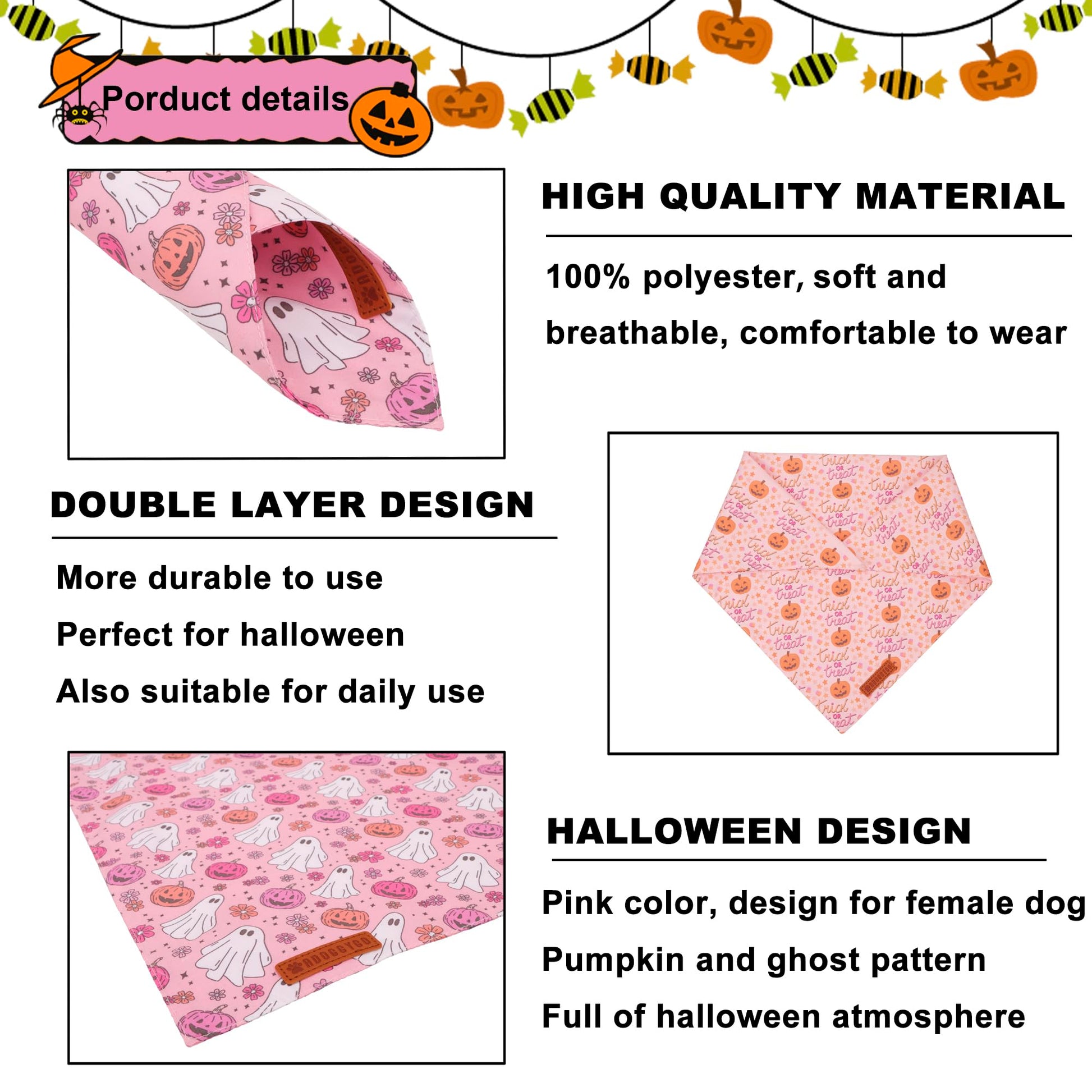 • Halloween Dog Bandanas: Cute pumpkin, ghost and 'trick or treat' pattern, pink color, specially designed for female dogs, make them look more attractive and eye-catching during halloween holiday.