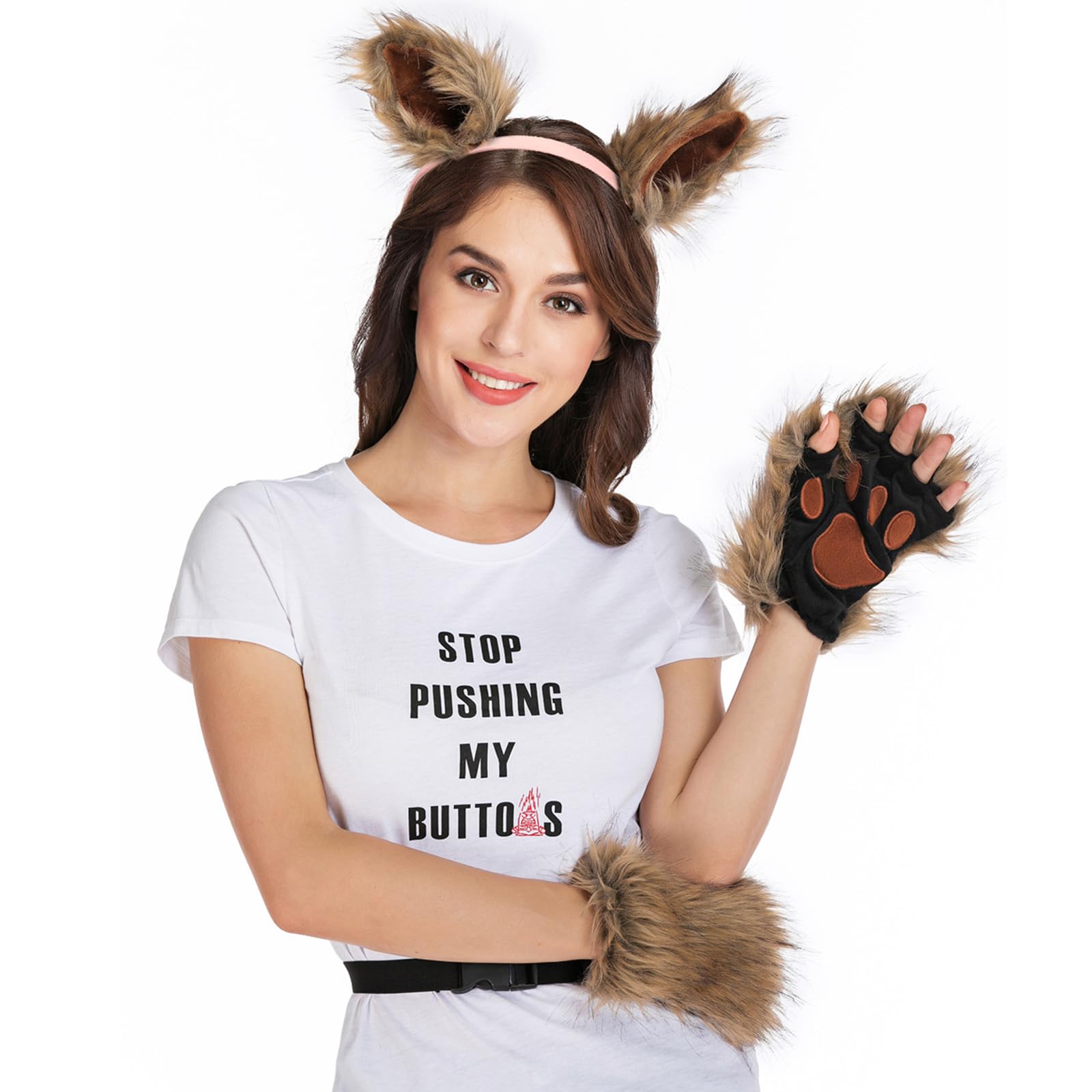 Adolala Faux Fur Fox Tail Cat Wolf Set Plush Mask Fluffy Paw Gloves Halloween Christmas Party for Women
