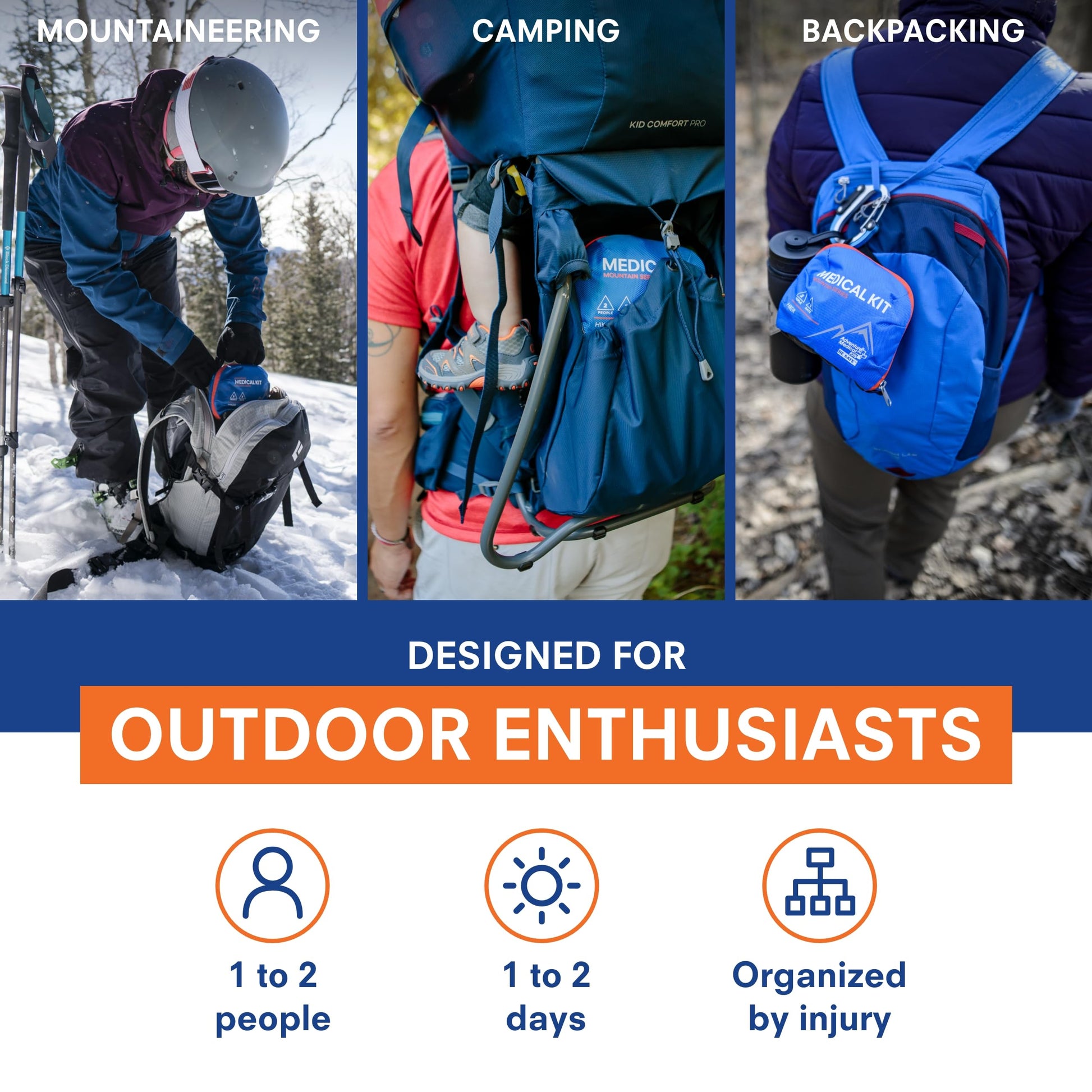 • Expedition-Grade Kit: Designed to support up to 2 adventurers for up to 2 days, this mountaineer first aid kit is a must-have for extended outdoor excursions and remote expeditions