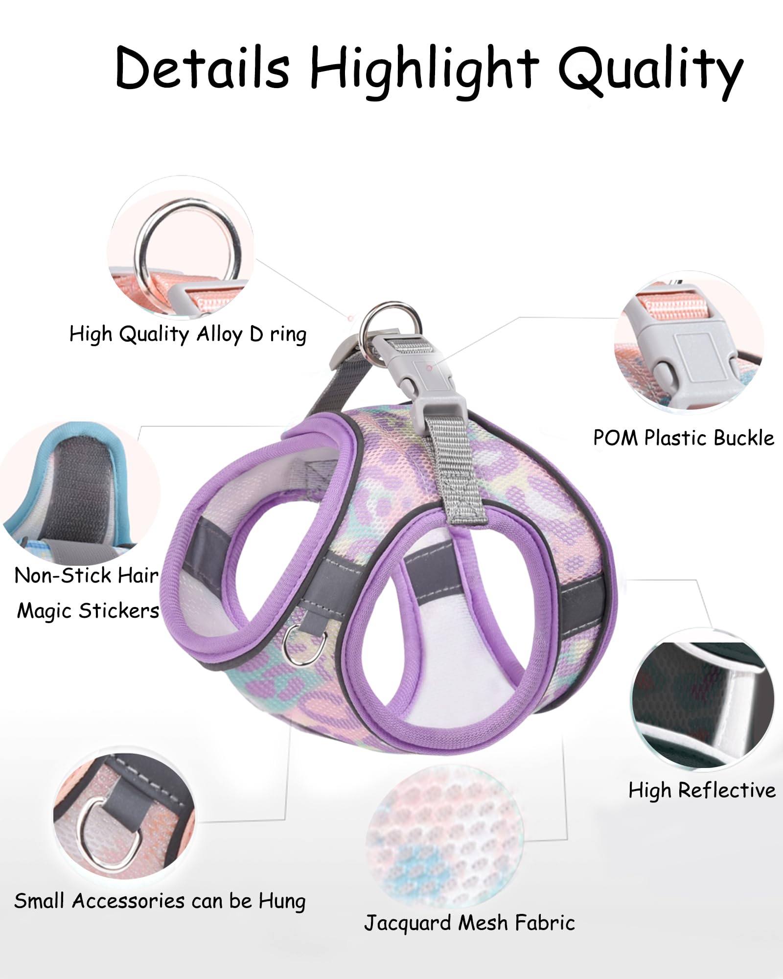 Aecllcea Dog Harness (Purple, S) - Jacquard Fabric, Easy Step-in, No Pull, Reflective Strip, Small Dog Harness and Leash Set