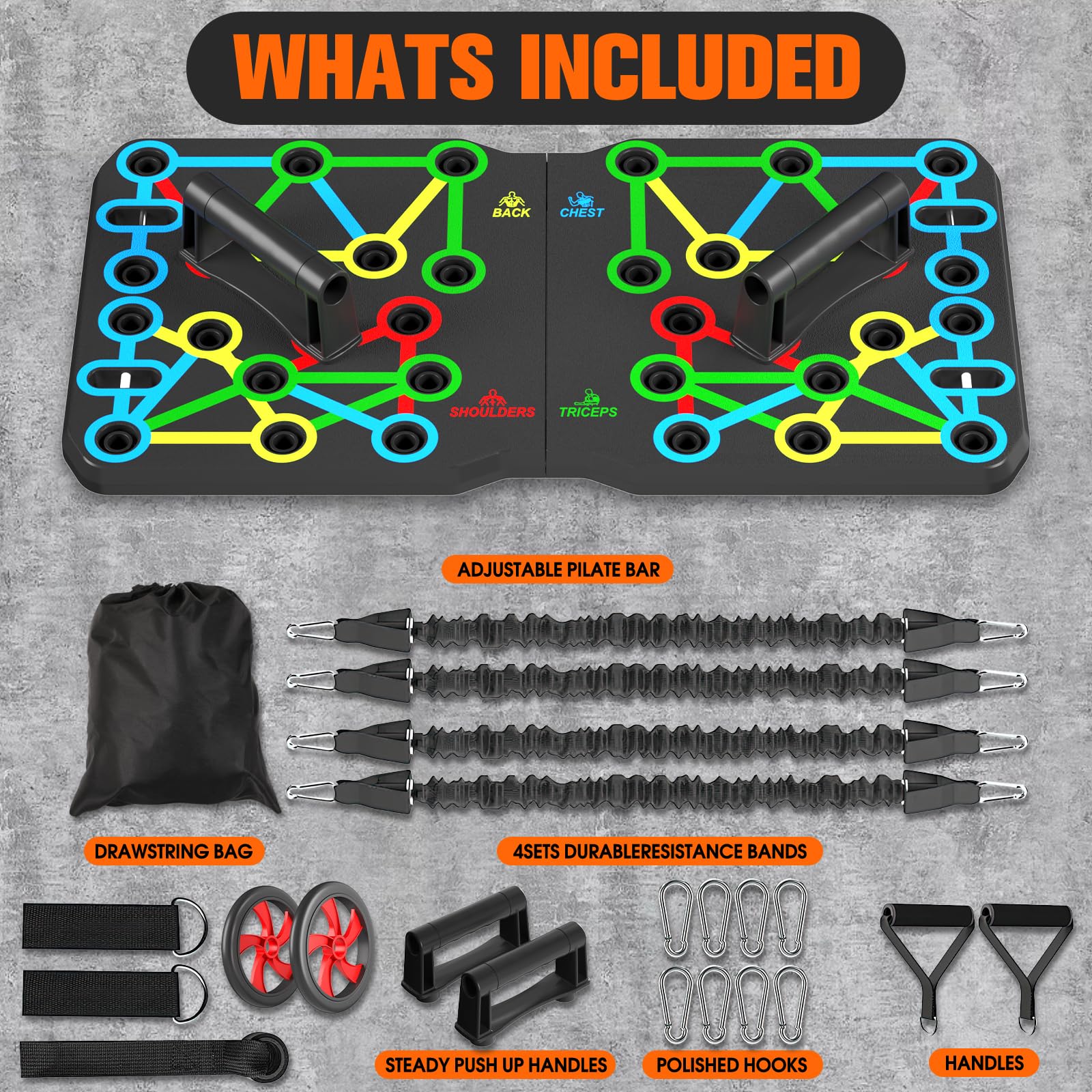 • Additional accessories: Contains push-up handles, Pilates sticks and resistance bands to increase the diversity and intensity of exercise and meet different fitness needs.