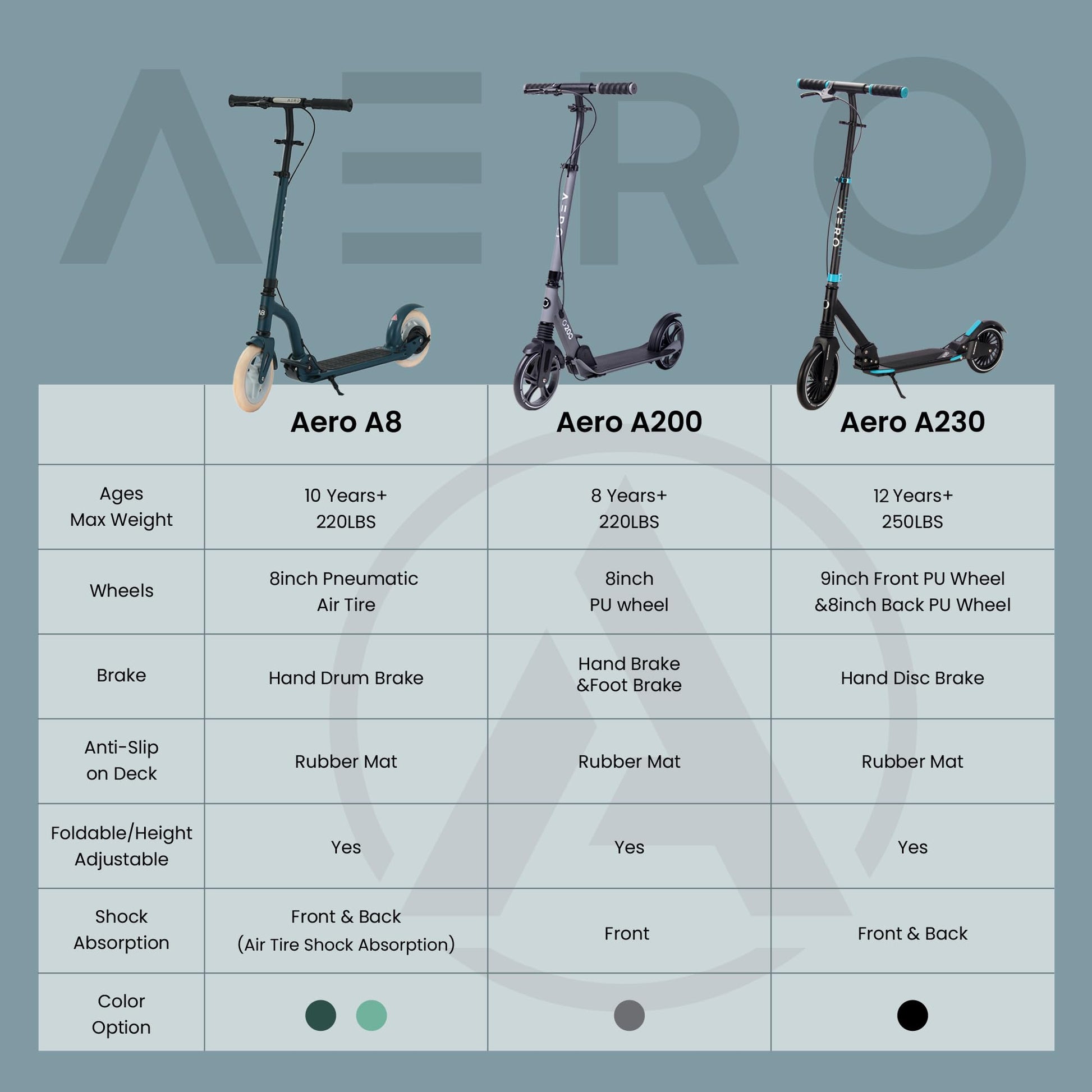 • DESIGNED FOR KIDS, TEENS AND ADULTS: Aero A200 NON-ELECTRIC kick scooter is specially designed for big kids 8-12, teens, and adults. It is perfect for both recreational sports and short-distance commuting.