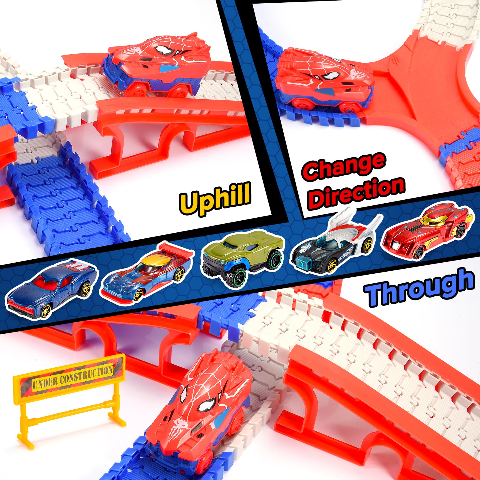 • PERFECT GIFTS FOR KIDS: Packaged in an exquisite gift box, our car track set makes a ideal spider gift for boys and girls age 3-4 4-6 6-8 8-10 for any occasion, such as Birthday, Halloween, Christmas. If you are looking for a unique gift for someone who loves hero, car, this toy car tracks set is the perfect choice!