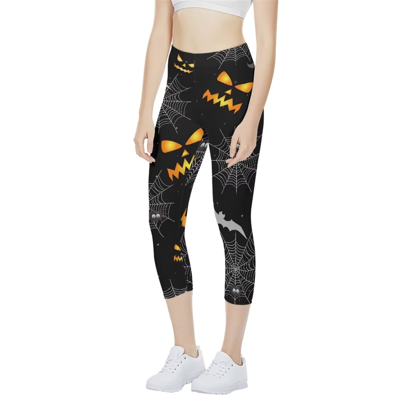 AFPANQZ Women's Leggings High Waisted Yoga Pants Casual Butt Lift Compression Leggings for Gym Yoga Sport Pants Seamless Halloween Cobweb Pumpkin Print Stretch Capri Yoga Pants