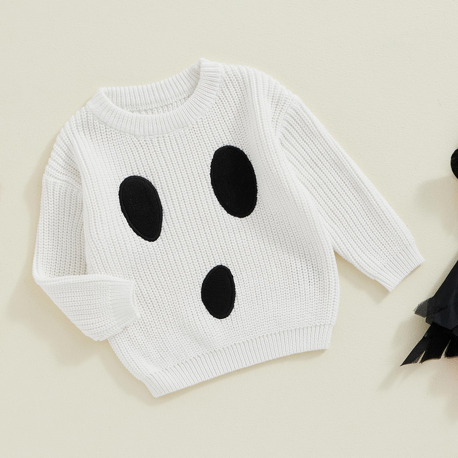 Afunbaby Baby Girl Boy Knit Sweater Blouse Pullover Sweatshirt Warm Crewneck Long Sleeve Tops for Infant Toddler (White Halloween Ghost, 12-18 Months)