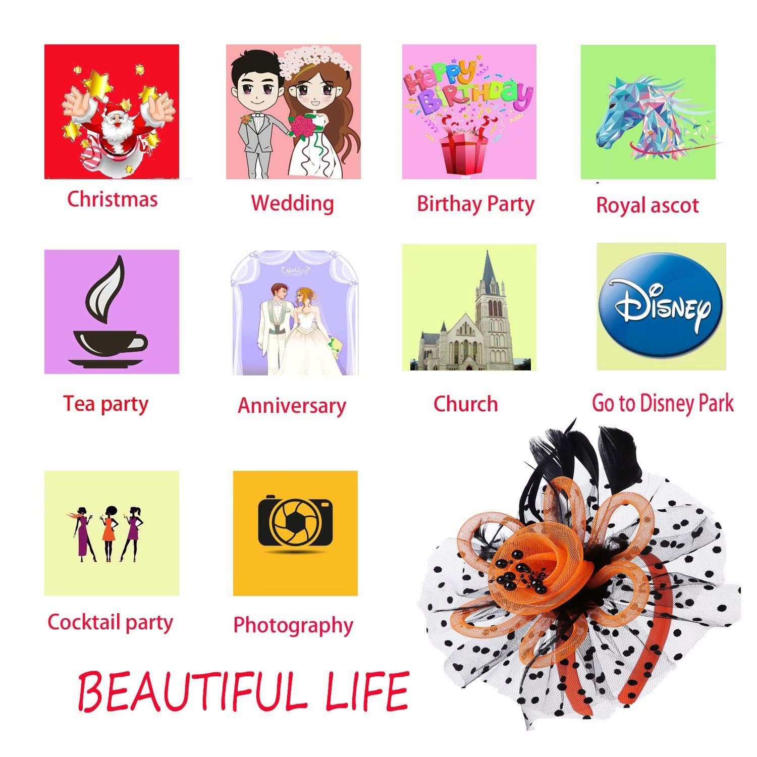 • [Graceful Fascinators]: Suitable for halloween party, photography, costume party, bridal party, wedding, church, cocktail party and tea party ,Wear it to parties, weddings, funerals, traveling, banquet, anniversary.This fascinators hat for women is excellent for Mother’s Day gift and Birthday presents. Unique design fascinator's will bring you charming, classy, timeless, warmth and playfulness!