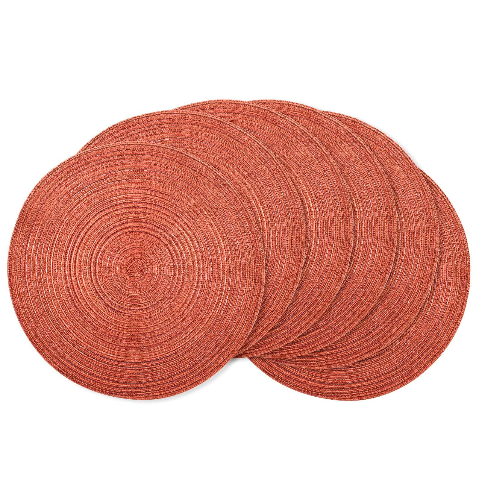 AHHFSMEI Round Braided Placemats Set of 6 Round Table Mats for Dining Tables Natural Woven Heat Resistant Place mats 15 Inch (Dark Orange)