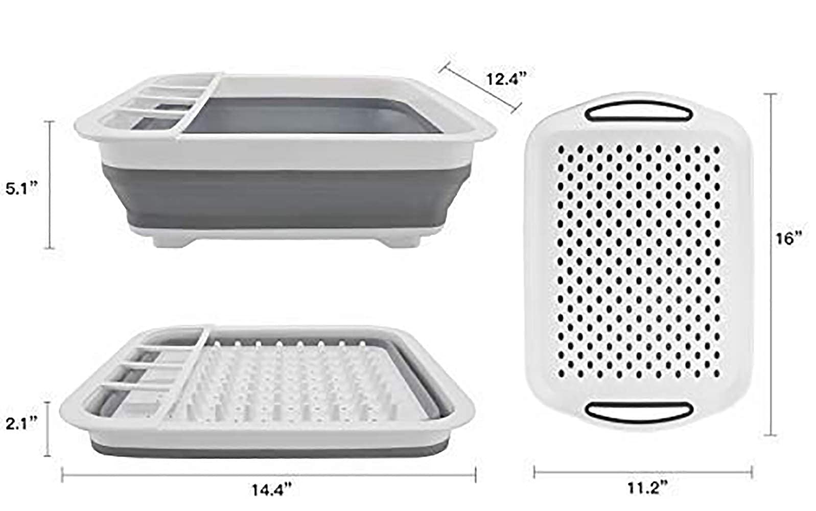 6.3 Dishes Drying Rack Collapsed Dimensions 14.4' (L) x 12.4'(W) x 2.1'(H) (36.5cm x 31.5cm x 5.5cm)