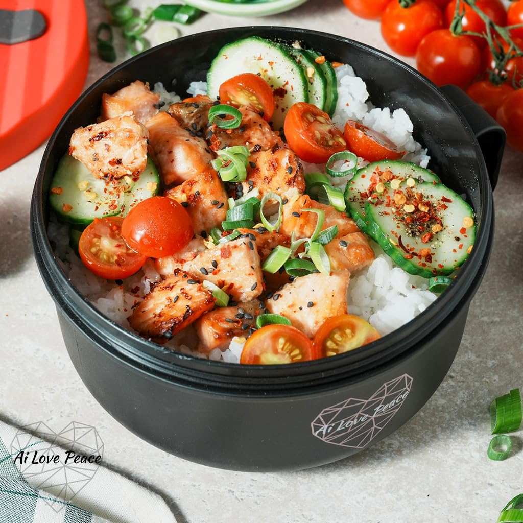• Microwave-Safe & Easy to Handle: Heat your meals quickly and safely—just be sure to remove the lid before microwaving to release steam and avoid pressure build-up. The built-in side handle makes it easy to lift the bowl directly from the microwave—safe, spill-free, and perfect for busy adults and dorm life.