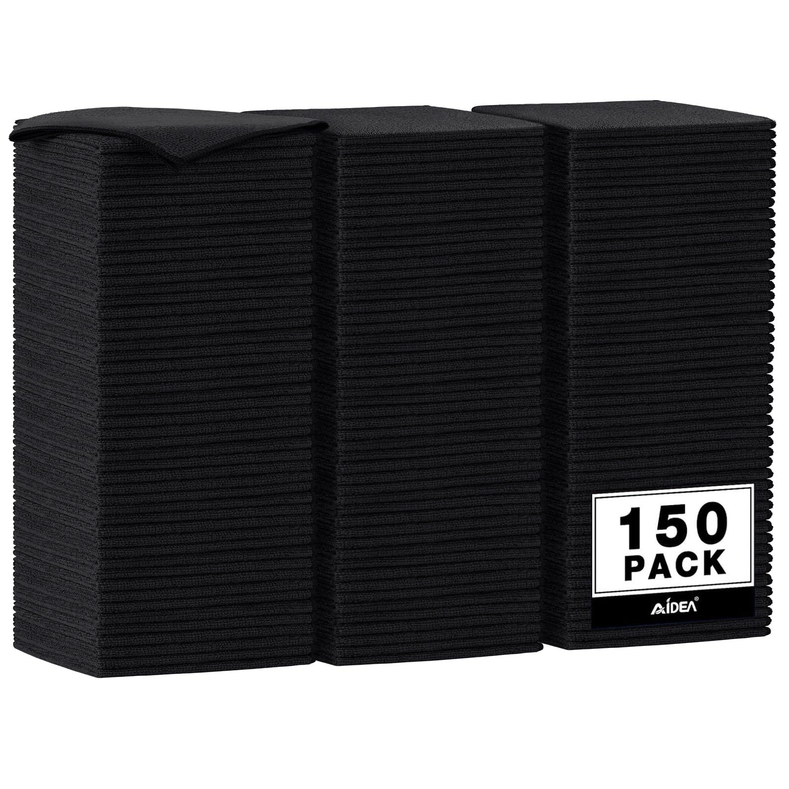 AIDEA Microfiber Cleaning Cloth Black 150PK, Microfiber Towels for Cars, Premium Car Cloths, Dusting Cloth Lint Free Cleaning Rags for SUVs, House, Kitchen, Window, Workshops,12×12"