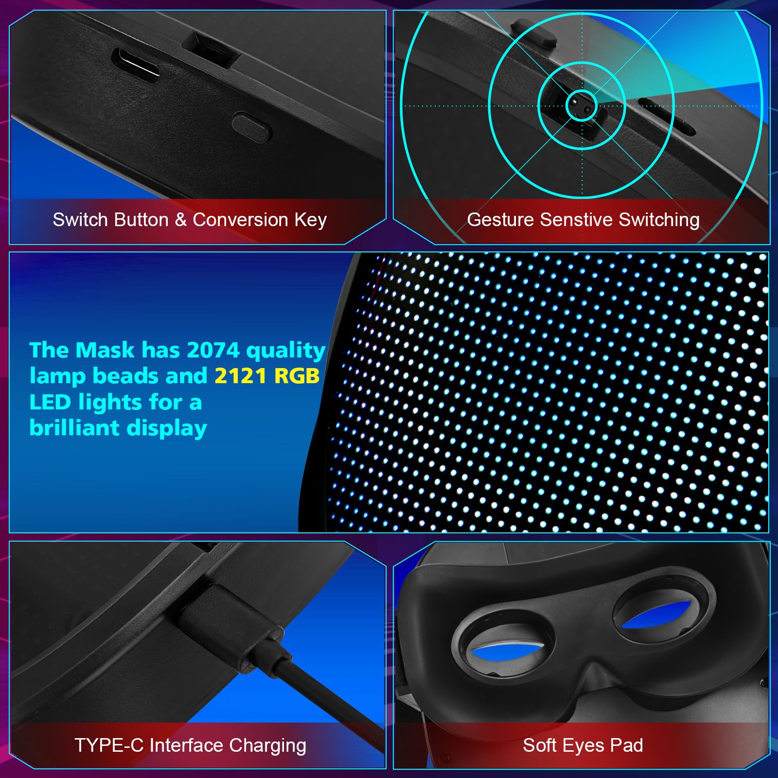 AIGLUN LED Face Transforming Mask with Gesture Control Fun - Cool stuff Halloween Cosplay and Christmas Parties