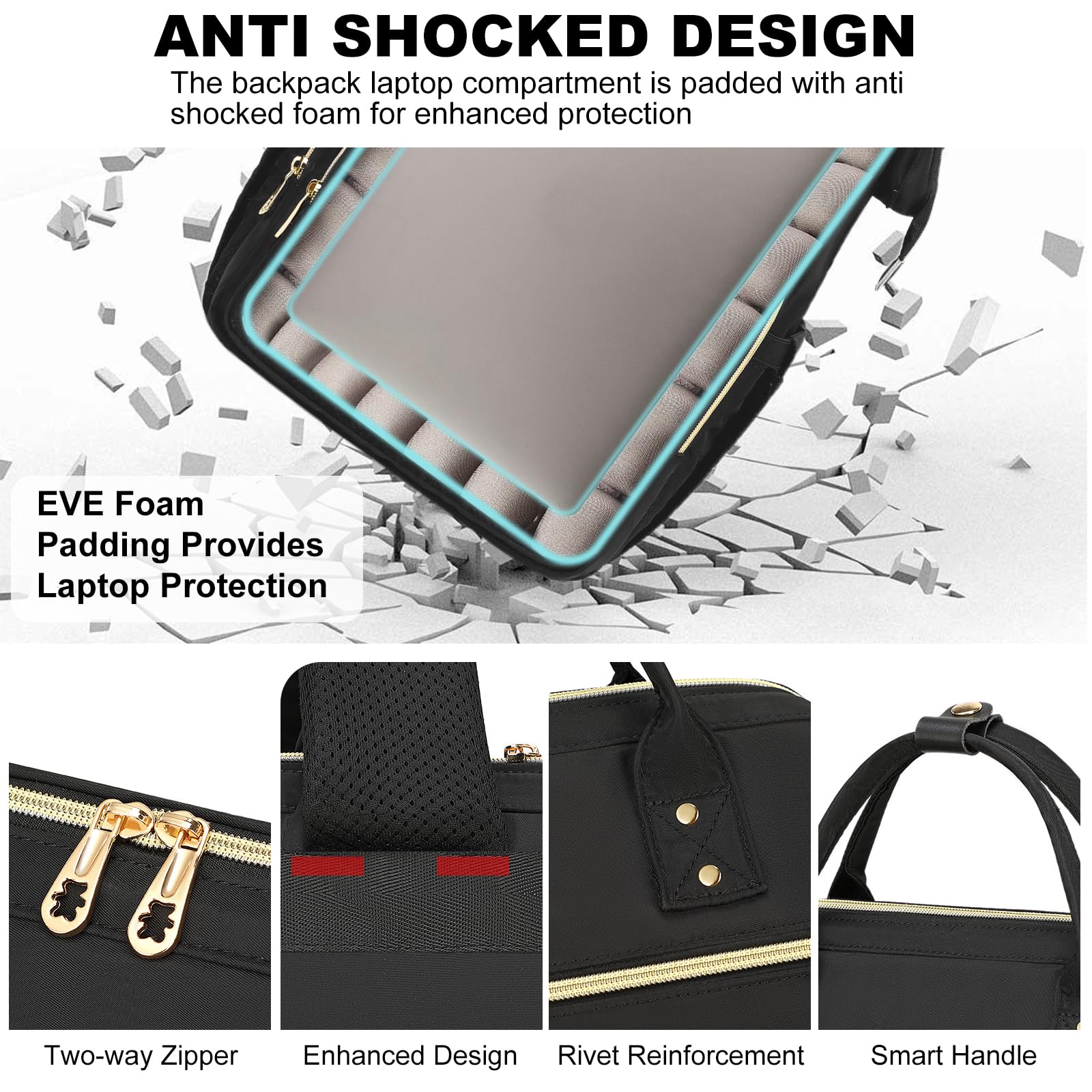 - 【Large Capacity & Multi-Pocket Design】Our laptop backpack features 1 main compartment and 3 zipper compartment pockets as well as 11 inner pockets and 2 side pockets, providing perfect protection for your 15.6-inch computer and place Your tablet, textbook, A4 folder, wallet, tissues, pens, clothes, sunglasses, bottles, etc. You can use this lunch backpack as a multifunctional women's backpack for teachers, college, nurse, work, travel, etc.
