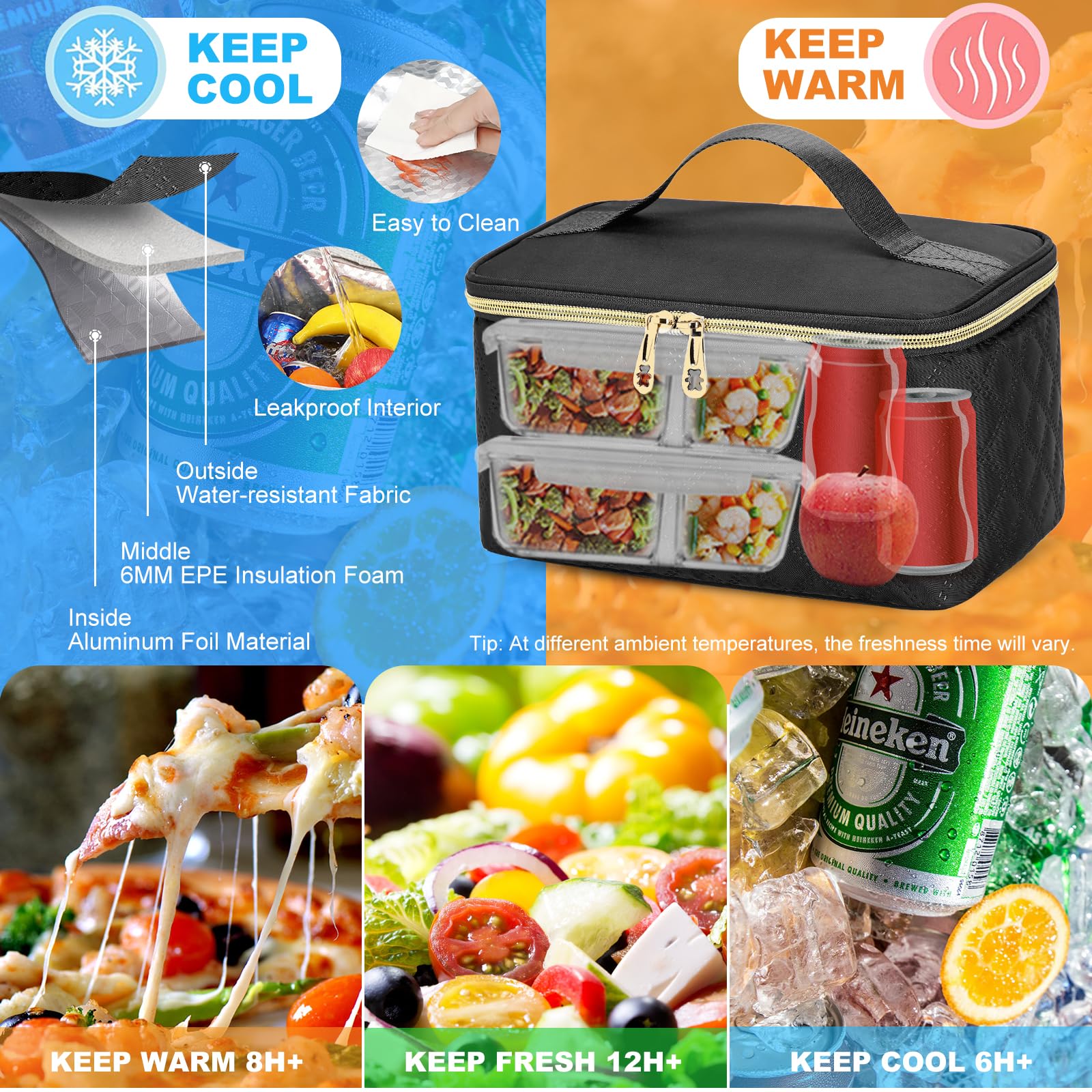- 【Lunch Backpack with Insulated Lunch Cooler Bag】The lunch bag can be taken out from the women's laptop backpack and used separately. The outer layer of the lunch box is made of durable nylon Oxford cloth and 6MM EPE insulation material, and the aluminum PEVA seamless heat-pressed lining is leak-proof and waterproof. It can keep food cold, hot or fresh for more than 6-14 hours, perfect for work and picnics. , beach trips, festivals and city commutes, enjoy delicious fresh food.