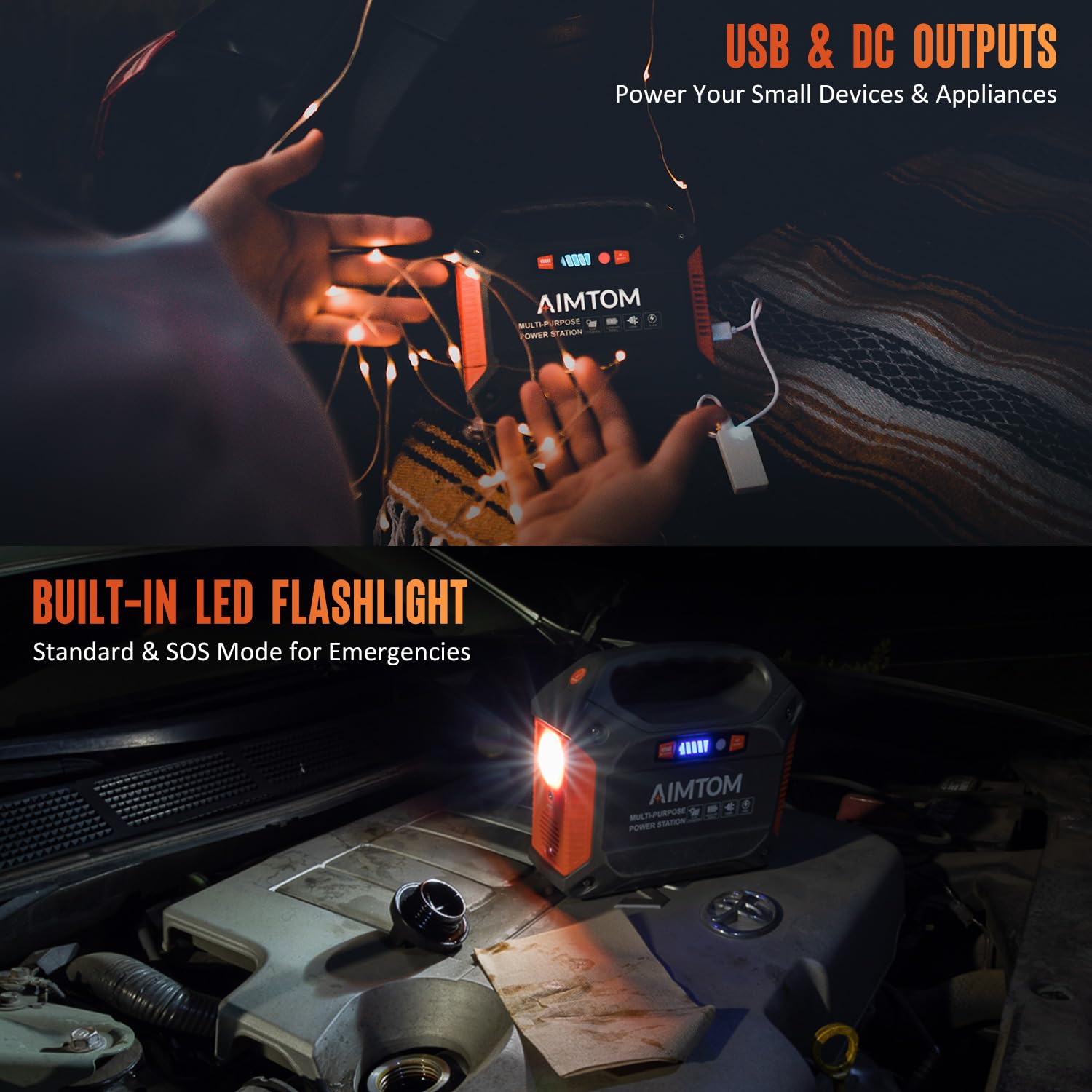 • ▲ Portable & Versatile Design: Lightweight and compact with a built-in ultra-bright LED flashlight/SOS mode, this multifunction power station is your perfect companion for camping, hiking, power outages, mobile stalls, and off-grid adventures.