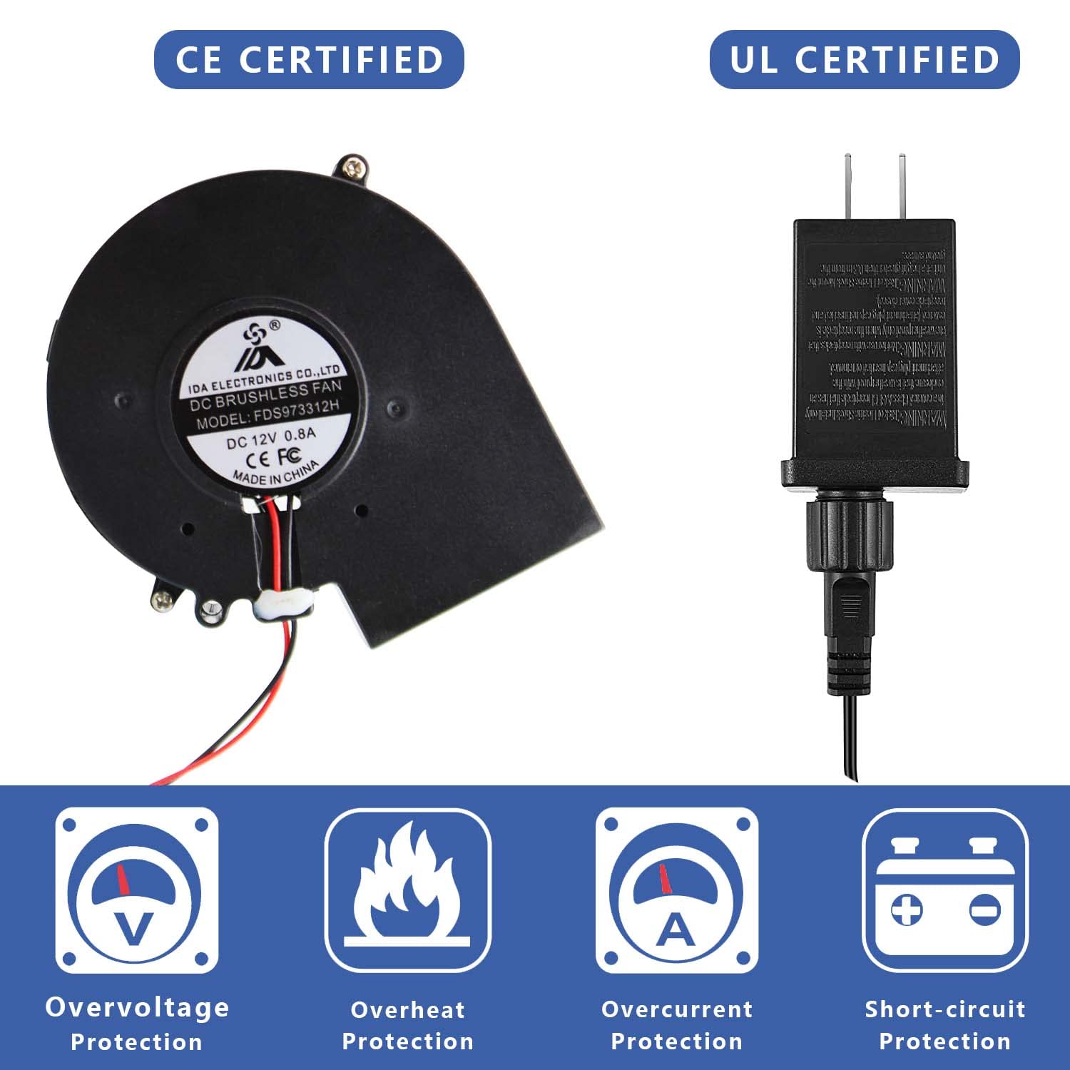 • Specification:Adapter input: 100-240V,50/60Hz, 0.7A, Adapter Output:12V 1A adapter; Fan Blower Output: 12V 0.8A fan blower fit for most of the small size holiday Inflatables.