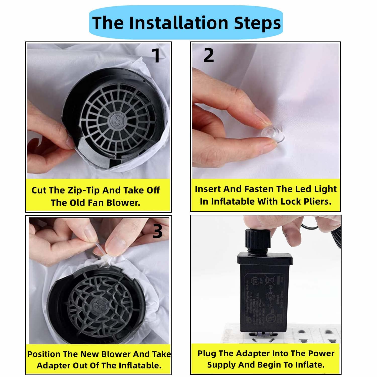 You can use this air blower to inflate your inflatable in Christmas Halloween and so on, the LED string light can be placed inside the inflatable, light up the inflatable, can be applied as a replacement for standing at home as the inflatable device.
