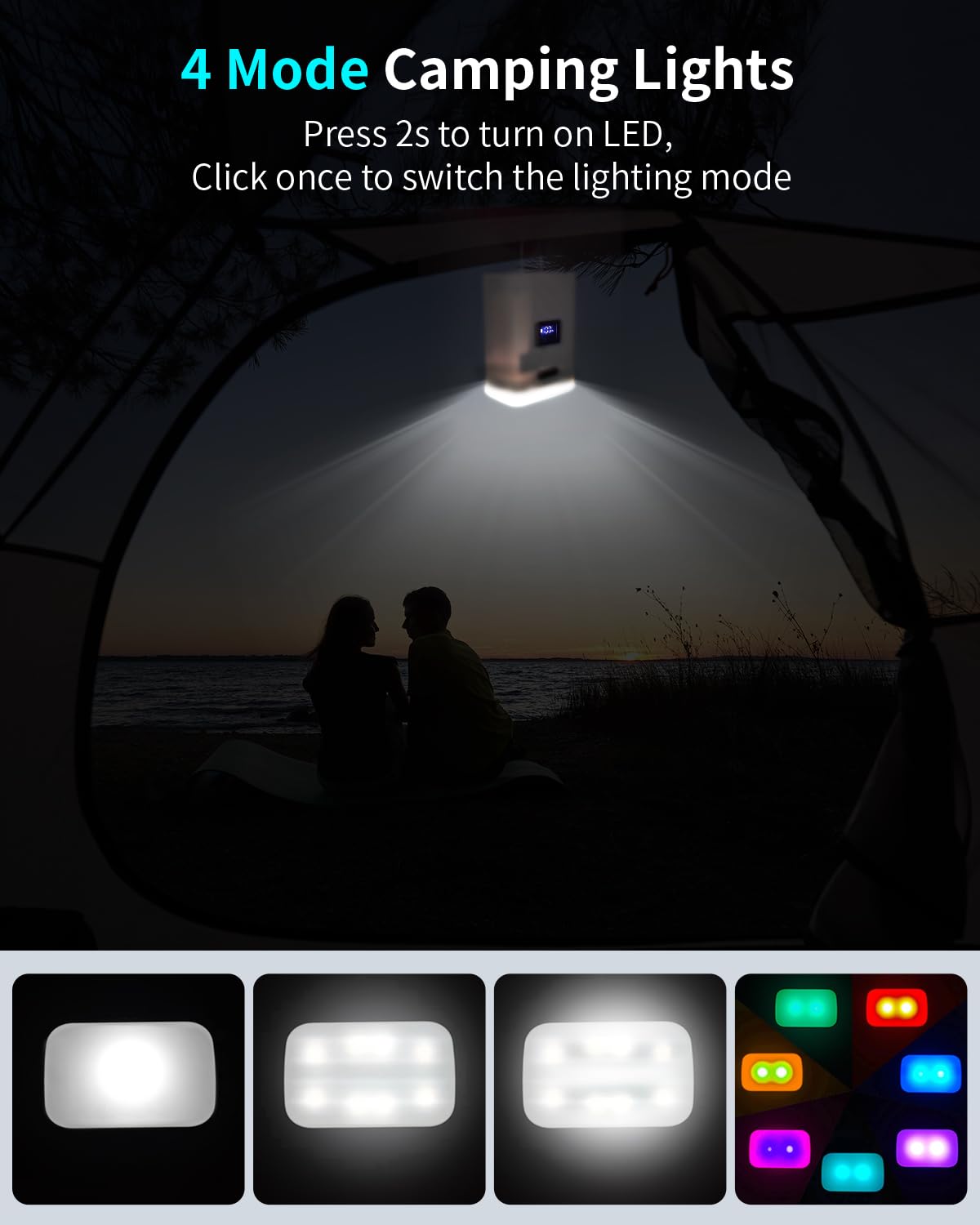 • [Digital LED Display & Camping Light] The digital LED screen clearly shows battery level and operating mode. Choose from four brightness levels plus a colorful light mode, perfect for creating a fun and functional ambiance during outdoor camping or evening activities.