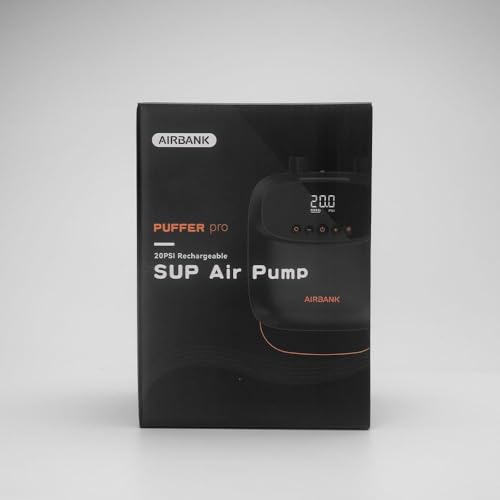 AIRBANK Paddle Board Pump Electric 20PSI The Puffer Pro, Portable SUP Pump, Dual-Stage Inflation & Auto-Off Air Pump for Stand up Paddle Boards, Kayak, Inflatables, Boats, Tent, Mattress, Kite Wings