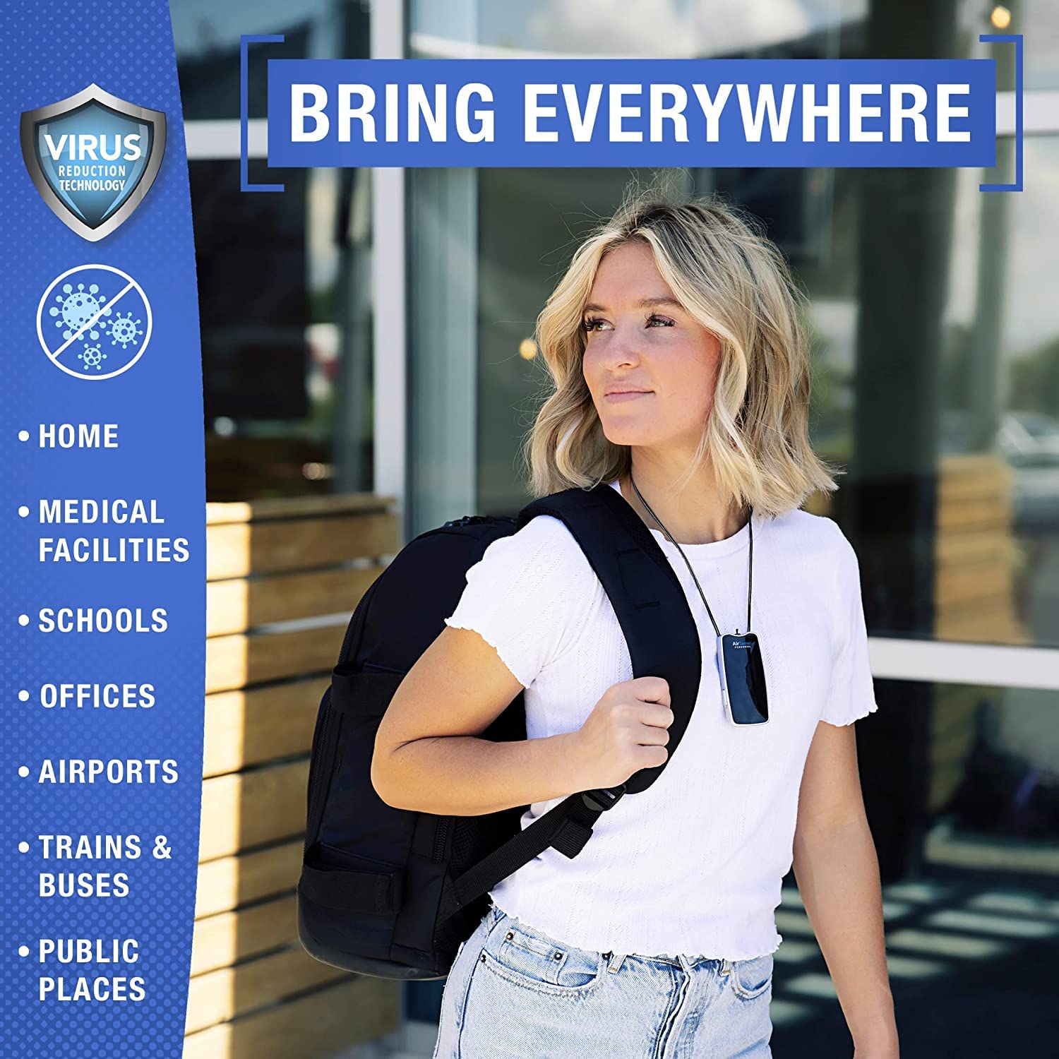 • Rechargeable Personal Air Purifier – This wearable purifier operates for 150+ hours on one single charge, ensuring long-lasting purification against airborne pollutants and peace of mind at home, the office, or abroad. Includes USB charging cable.