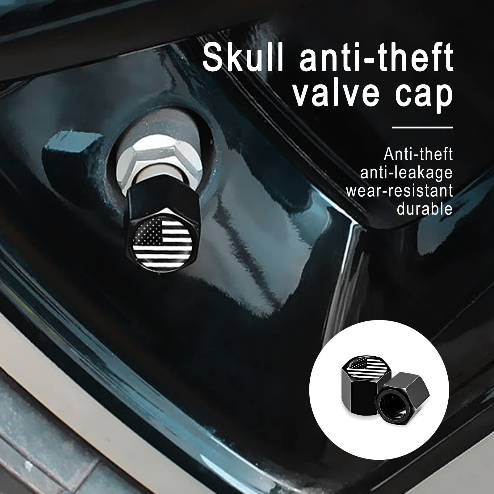 Ajxn 4 PCS B&W American Flag Car Wheel Tire Valve Stem Caps Airtight Dust Proof Covers Universal Tire Air Valve Caps for Cars, Trucks, Bicycles (Black)
