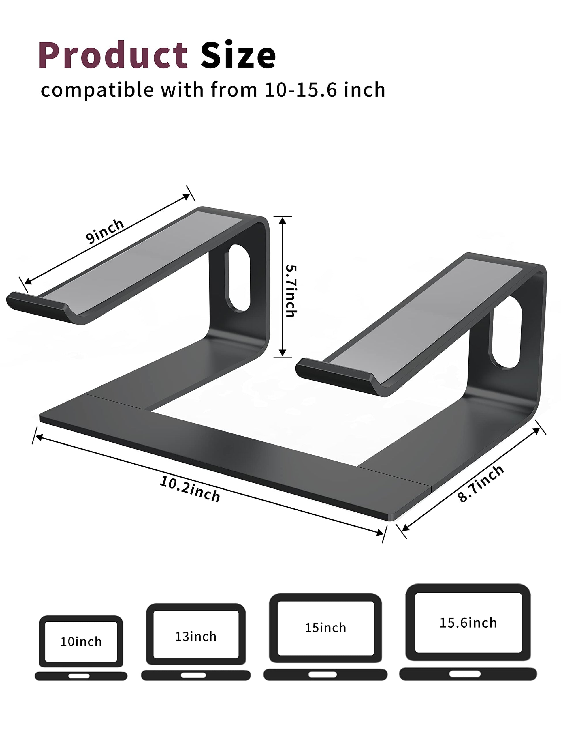 • Durable & Protective - Metal appearance made of thickened aluminum alloy, strongly durable. The rubbers on the top and bottom of holder ensure it sticks tightly to your laptop and desk, and protect your computer and desktop from scratches.