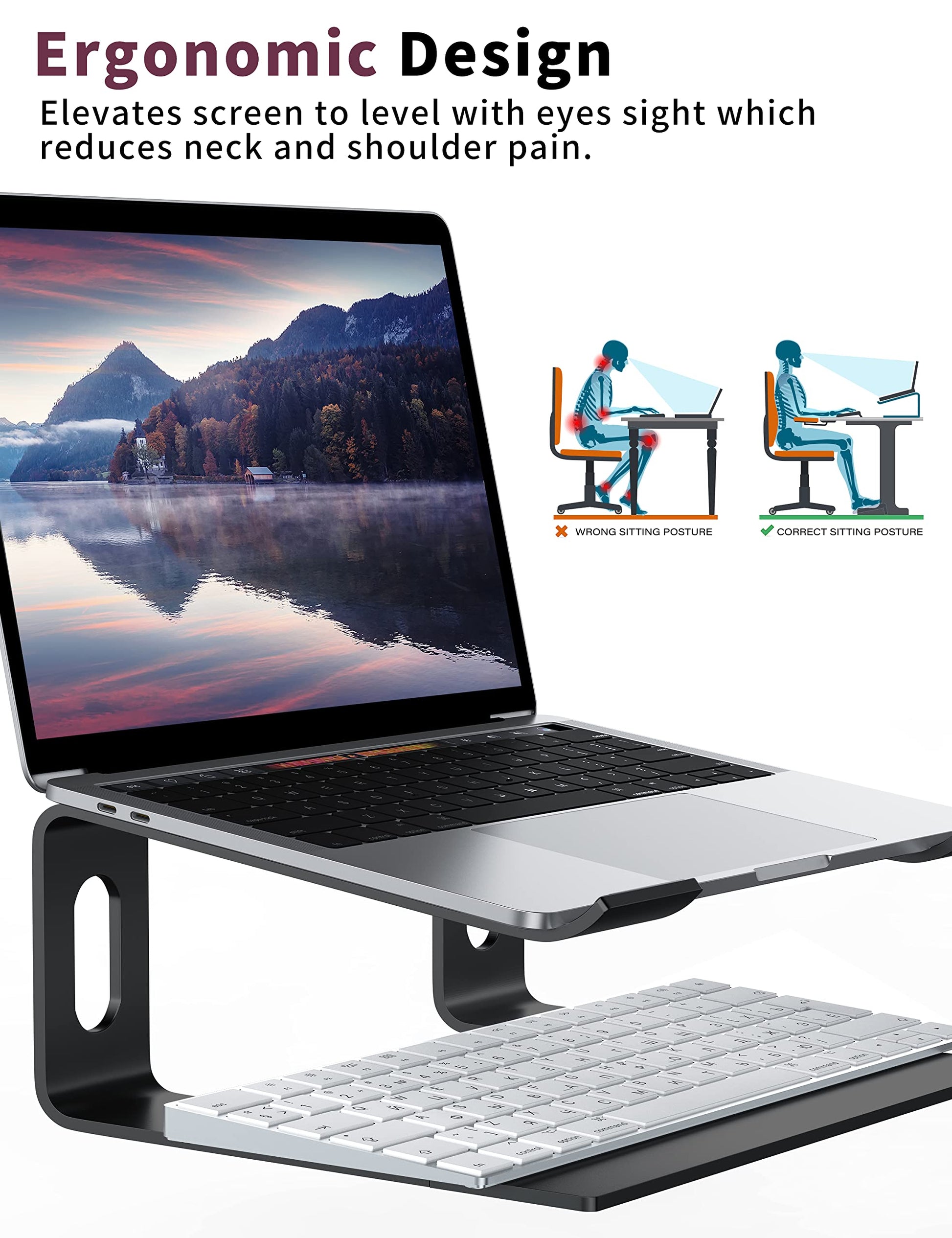 ALASHI Laptop Stand for Desk, Aluminum Computer Riser, Ergonomic Notebook Holder, Detachable Metal Laptops Elevator, PC Cooling Mount Support 10 to 15.6 Inches Notebook, Black