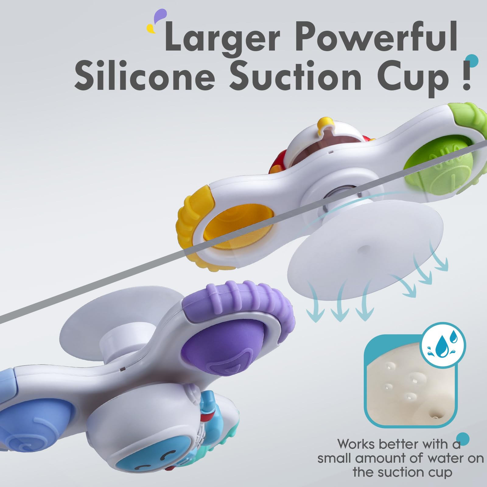 • STRONG SUCTION CUPS:They stick on any flat surface and stay well,they spin really fast