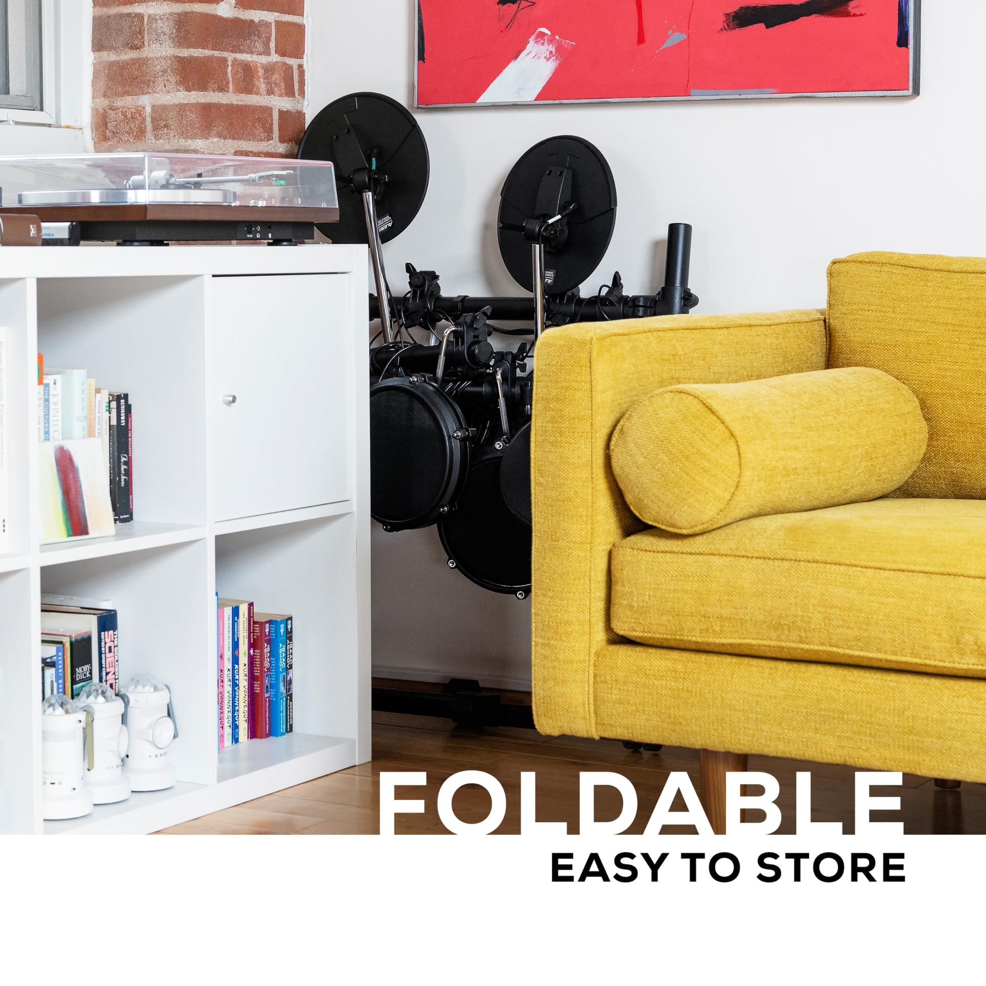 Everything You Need - Sturdy steel rack, connection cables, drum sticks, drum key and power supply included