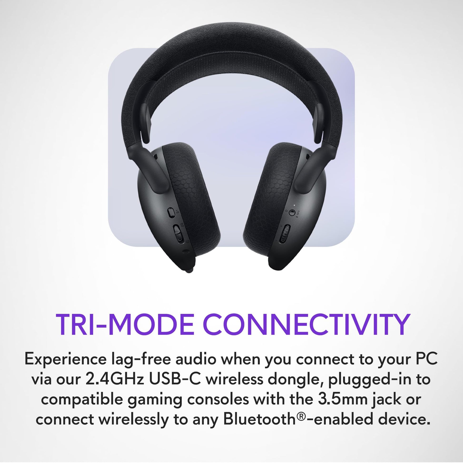 Details: Alienware Tri Mode Wireless Gaming Headset is built for long, comfortable gaming sessions and offers tactile audio precision with Dolby Atmos.