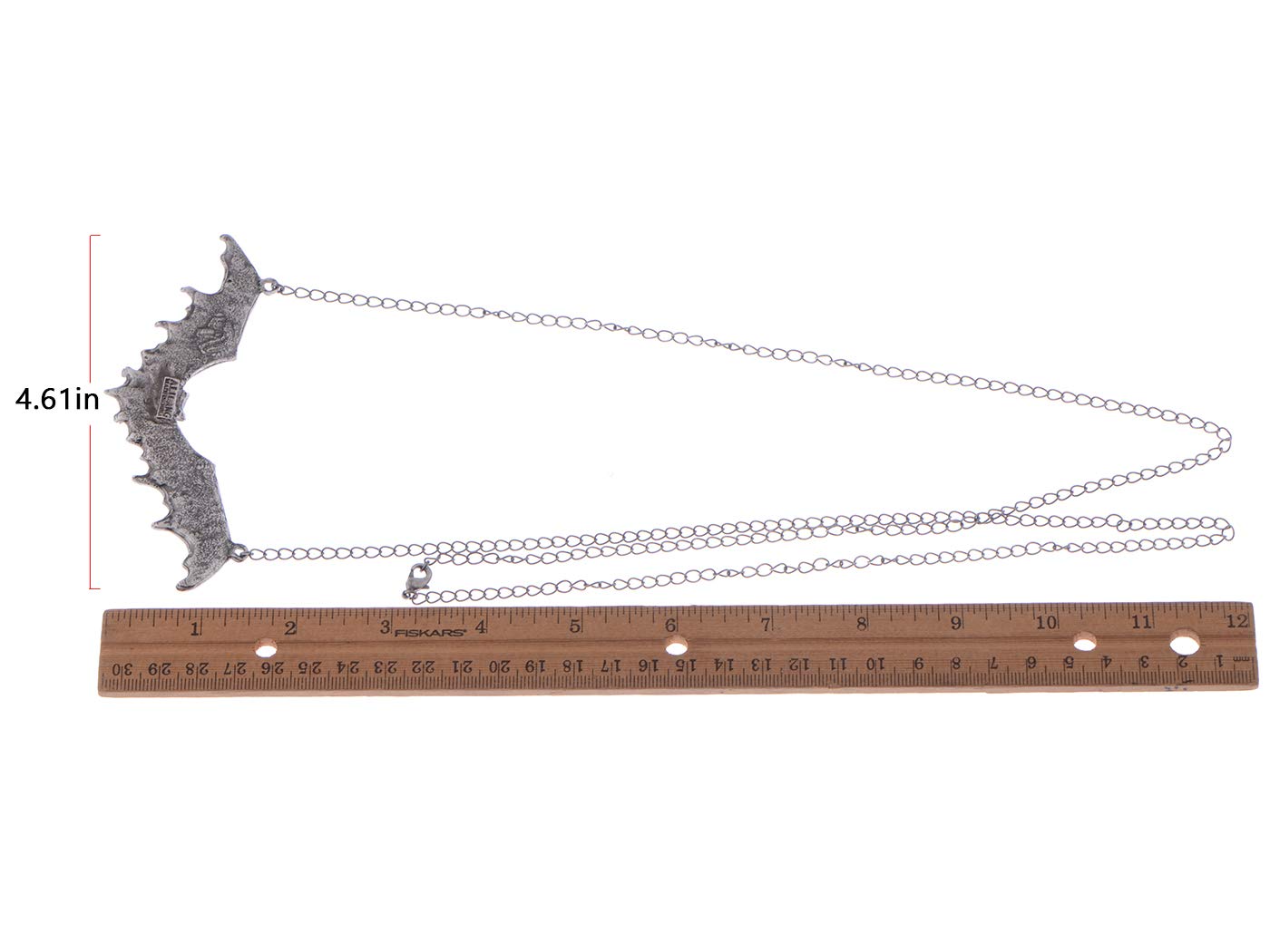 • Features - Necklace featuring frightening halloween flying bat design with antique silver enamel paint and alloy metal.