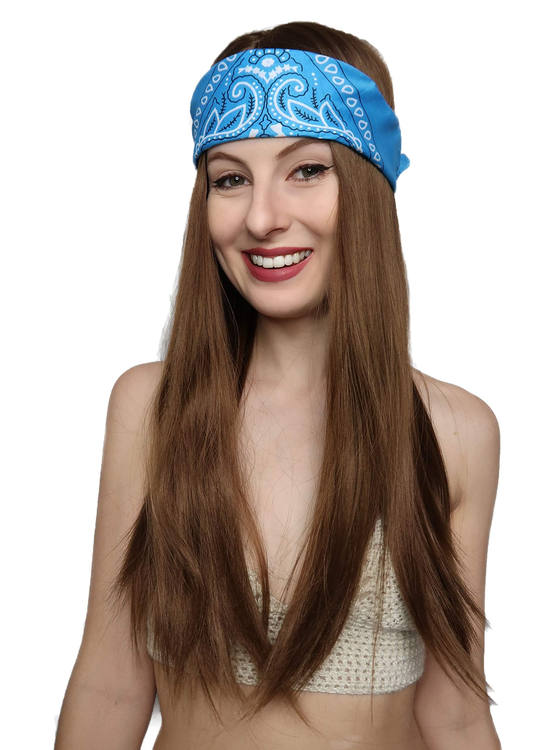 ALLAURA Compatible with Janis Joplin Wig – 3pc Long Brown Hippie Wig Costume Set with Bandana & Glasses – 60s 70s Unisex Hippy Look for Men & Women, Retro Festival Style, Halloween, Music Icon Cosplay