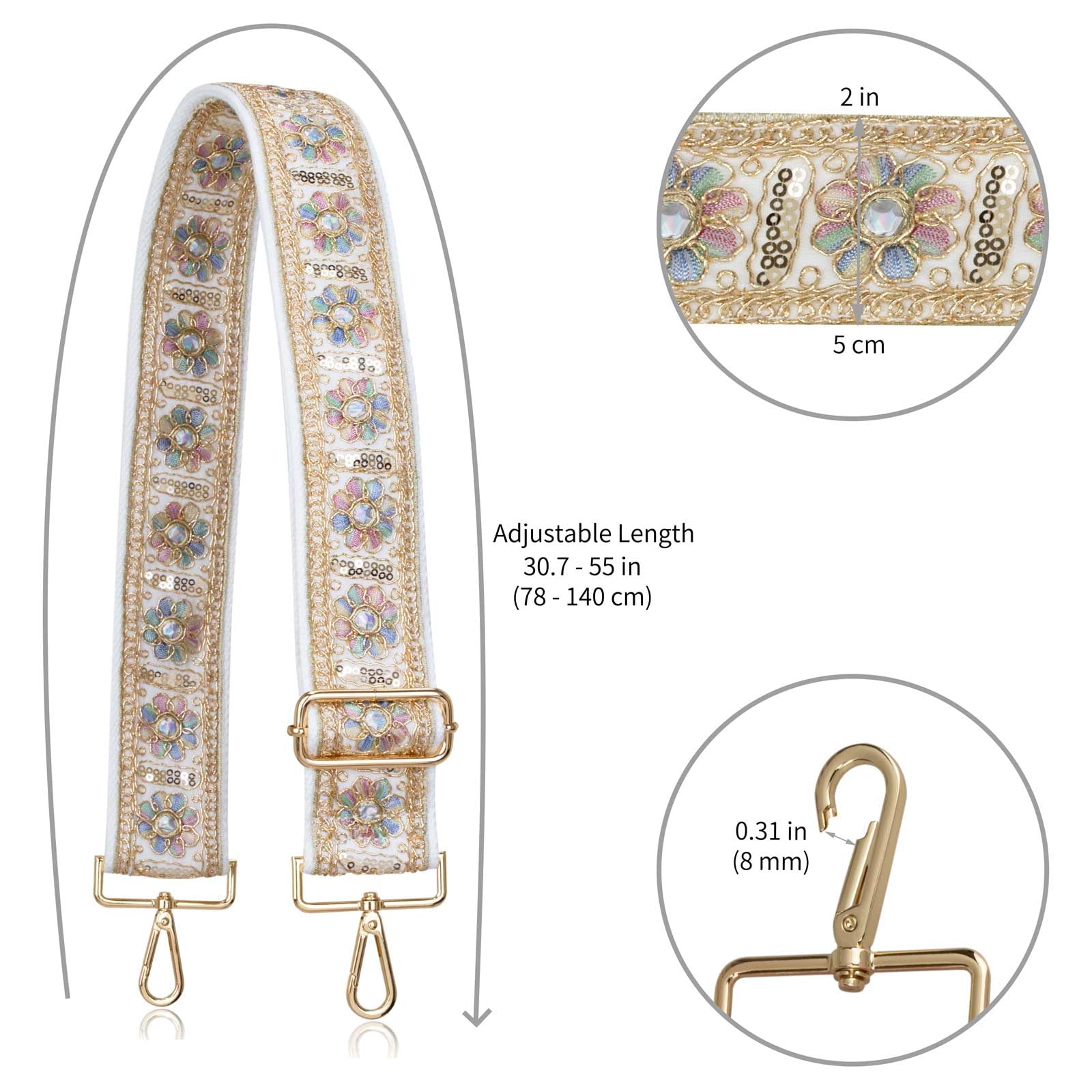 ALLZEDREAM Purse Strap Crossbody Replacement Handbag Shoulder Bag 2" Wide Adjustable Embroidered Lace Sequins