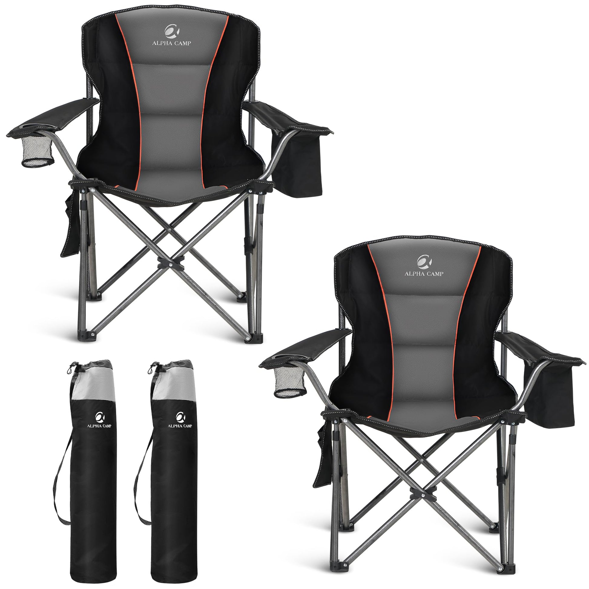 ALPHA CAMP Folding Camping Chair for Adults, Oversized Heavy Duty Lawn Chairs with Cooler Bag, Cup Holder & 600D Oxford Fabric, Folding Chairs for Outside Support 450 LBS,Outdoor Chair 2 Pack
