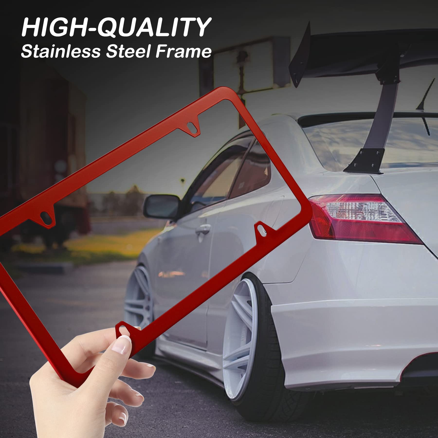 alpmosn 2PCS Stainless Steel License Plate Frames, 4 Holes Car Licence Plate Covers with Screws Washers and Caps, Car Exterior Accessories, License Plate Holder for US Vehicles (Red)