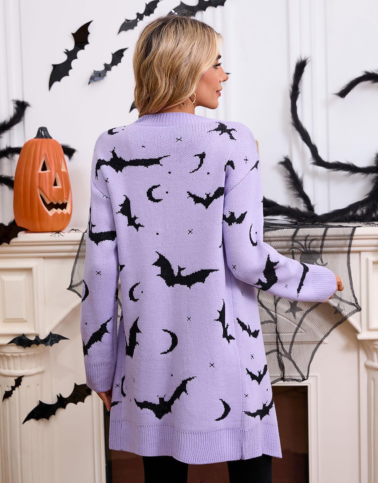 • Festive Designs: Featuring vibrant bat pattern, this women’s Halloween cardigan is perfect for getting into the spooky spirit while keeping warm and stylish during any Halloween party.