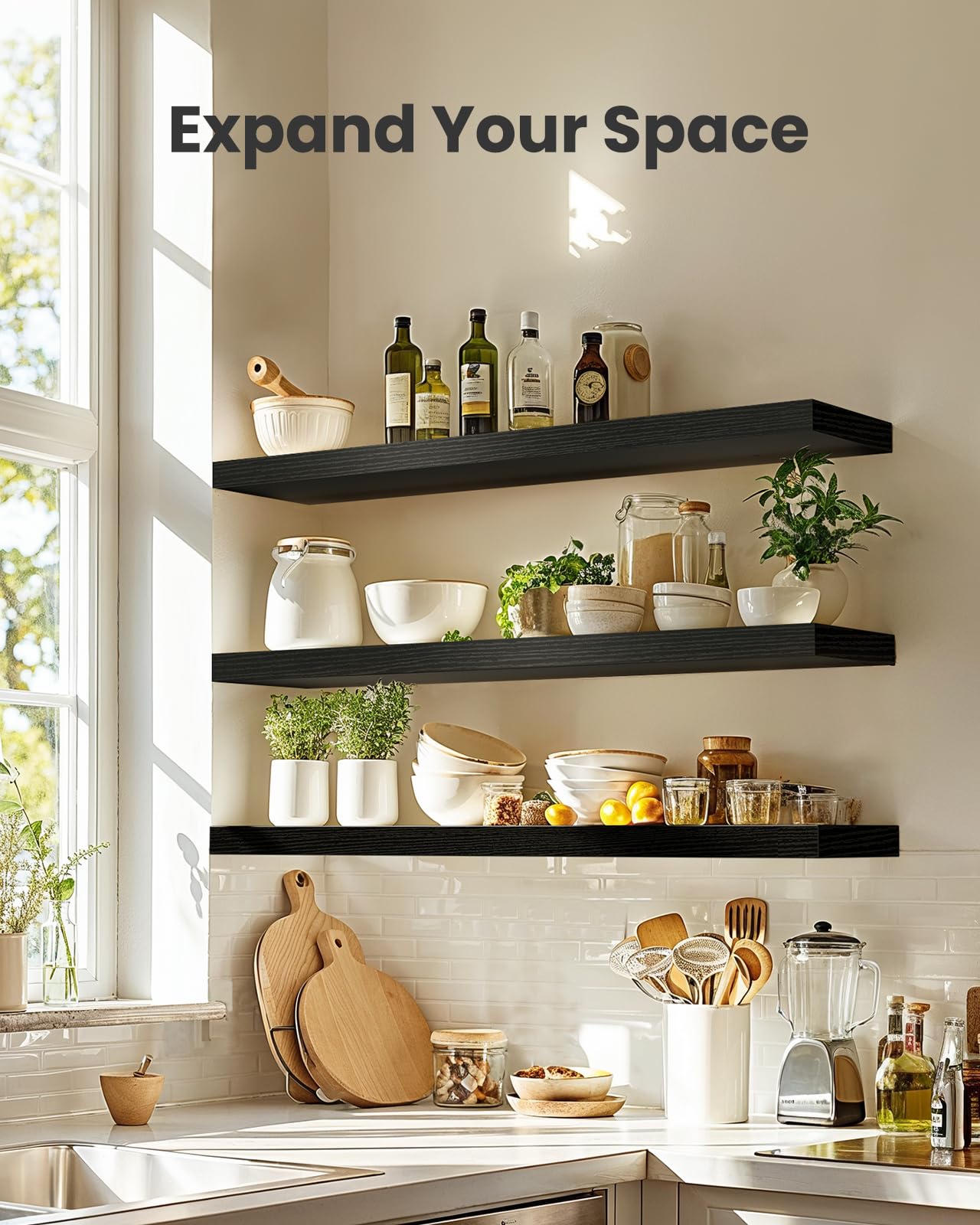 • Sleek Floating Design: Elevate your style with AMADA’s floating shelves, ideal for living rooms, bedrooms, or office spaces. Designed with modern, minimalist sophistication, the concealed brackets of our wall shelves help to maximize wall space for a seamless, streamlined look.