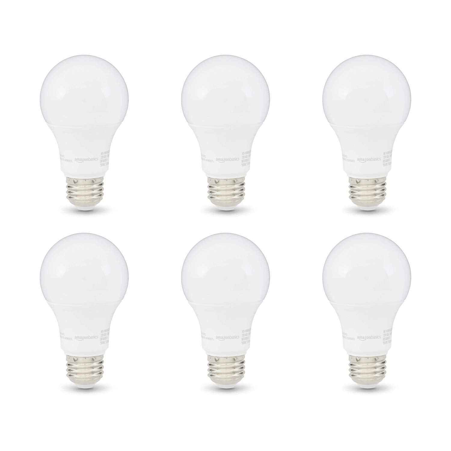Amazon Basics A19 LED Light Bulbs, 60 Watt Equivalent, Energy Efficient 9W, E26 Standard Base, Soft White 2700K, Dimmable, 10,000 Hour Lifetime , 6-Pack