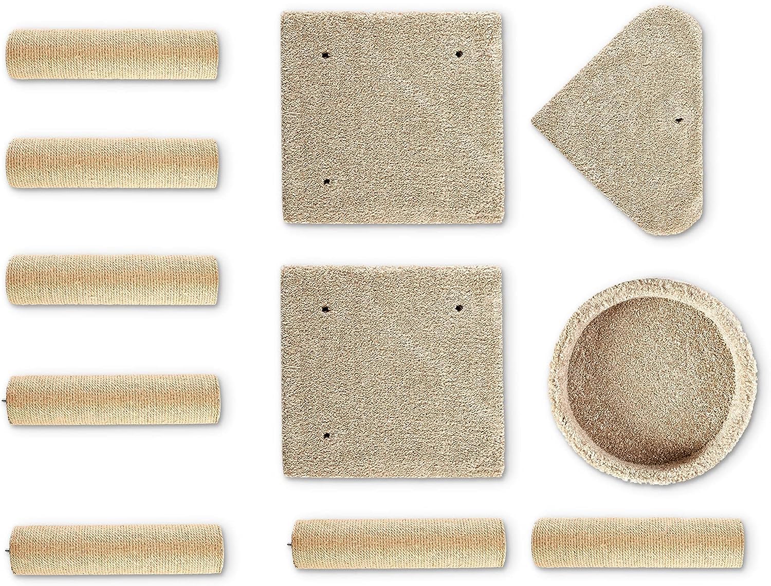 • 7 scratching posts wrapped in jute rope create enticing scratching surfaces